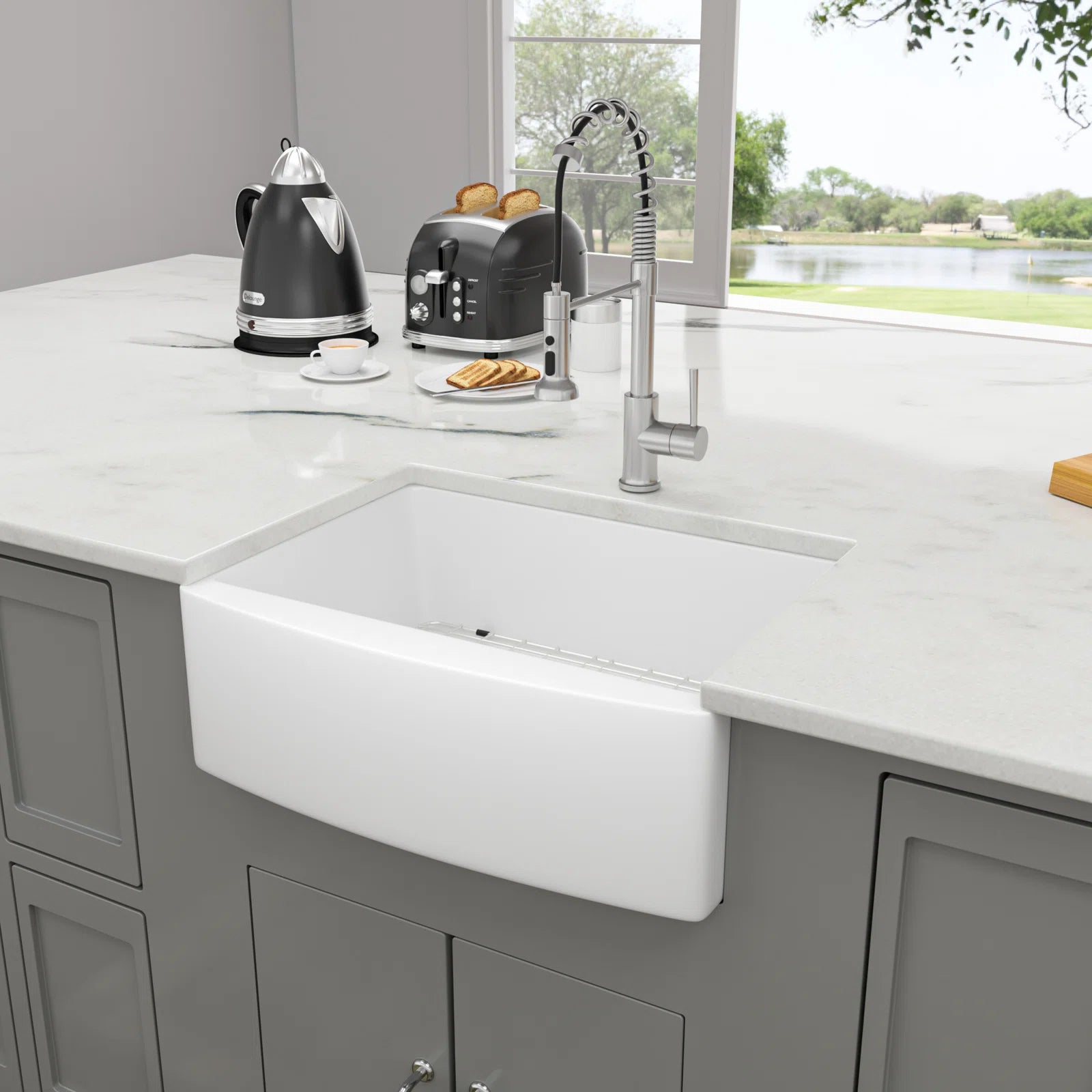 The Lordear ceramic farmhouse sink features a sloped bottom for quick drainage, keeping your ceramic sink clean and dry.