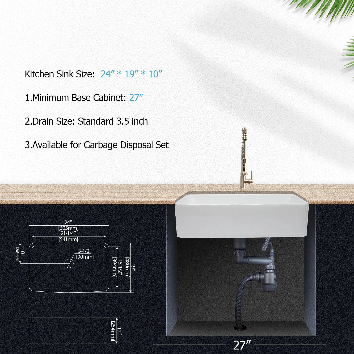 | Included Components | Lordear 24 Inch Farmhouse Kitchen Sink White Fireclay Porcelain Ceramic Apron Front Single Bowl Kitchen Farmer Sink 10" Deep Basin 24x19 Inch Farm Barn Sink |