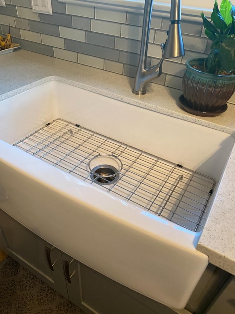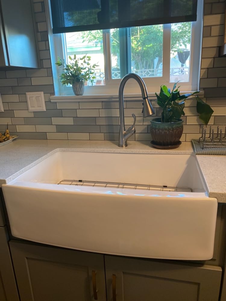 The Lordear ceramic farmhouse sink features a sloped bottom for quick drainage, keeping your ceramic sink clean and dry.