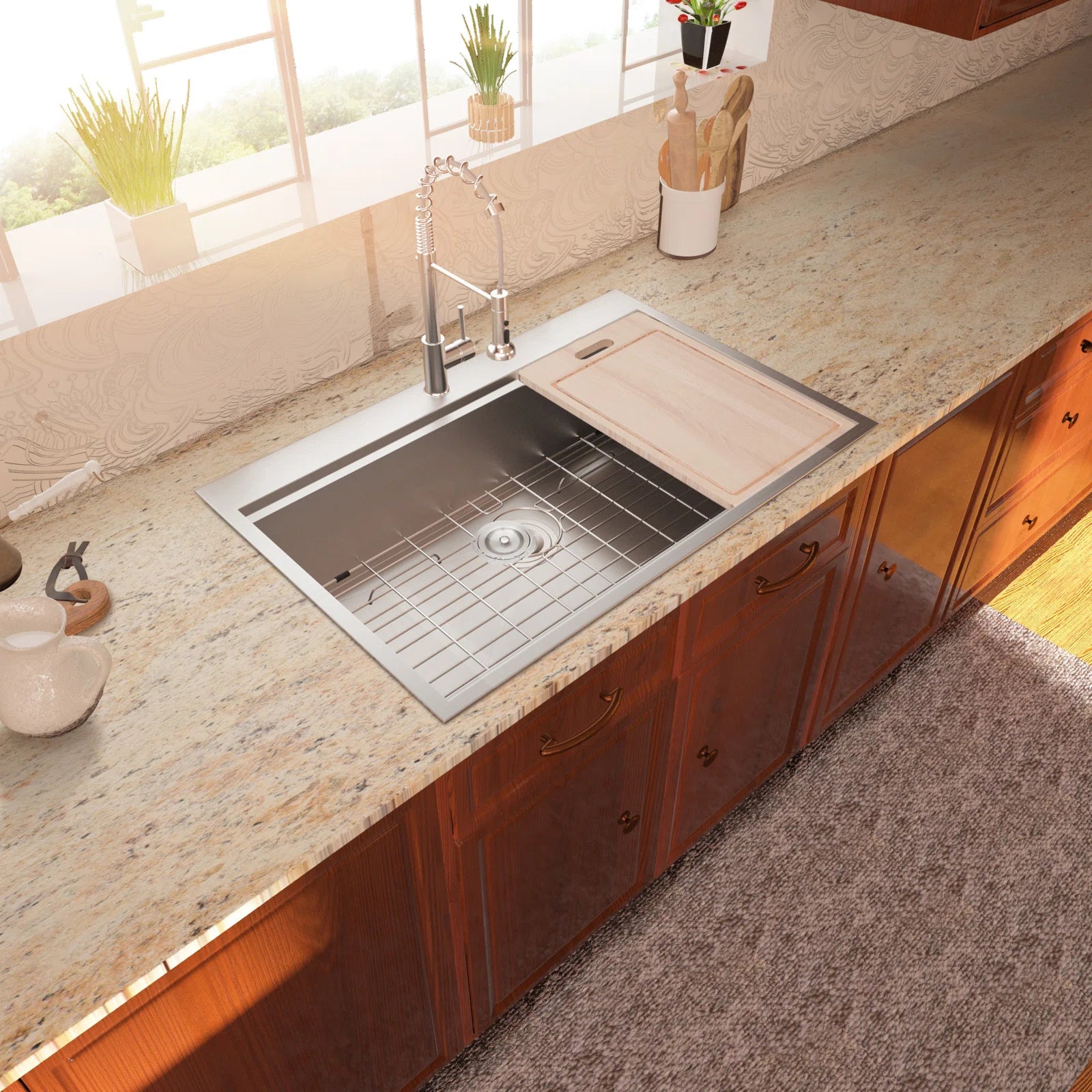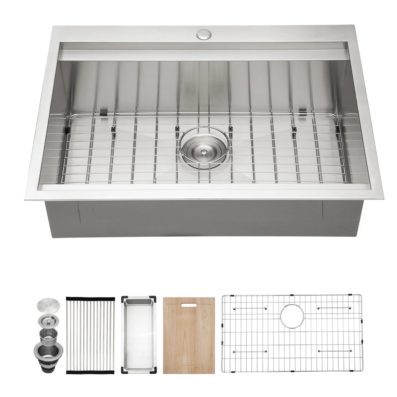 | Included Components | Stainless Steel Drop-In Sink, Bottom Grid, Roll-Up Rack, Drain Assembly, Cutting Board |
