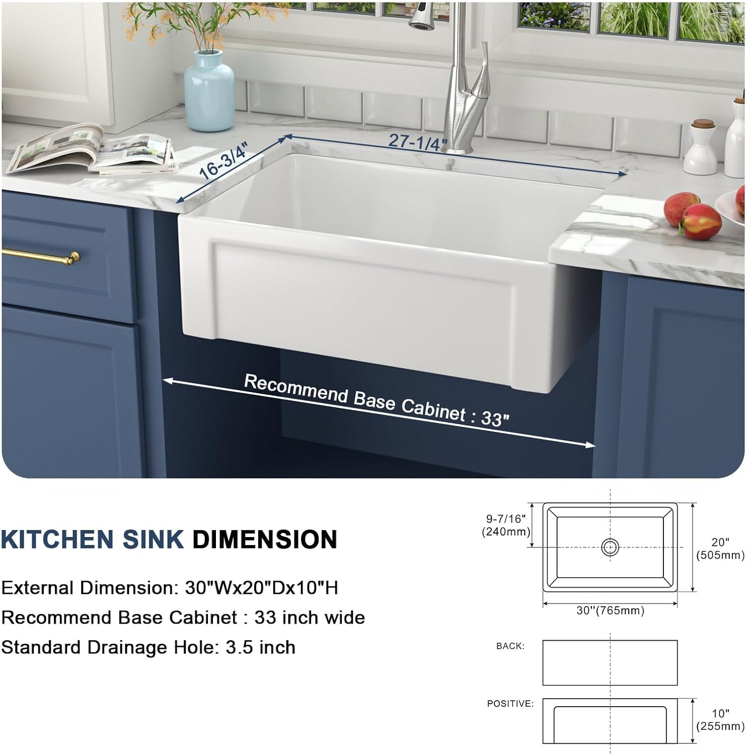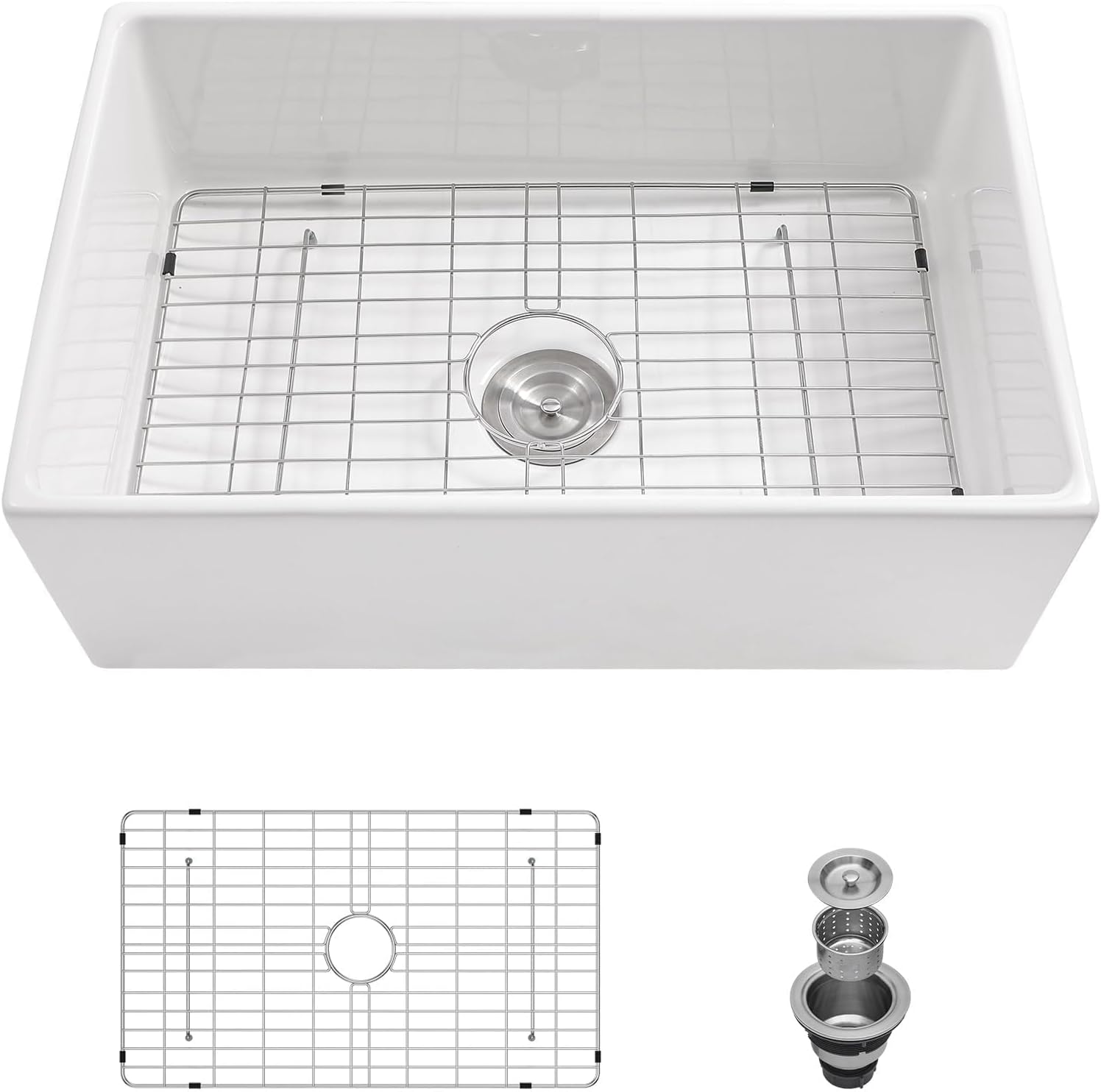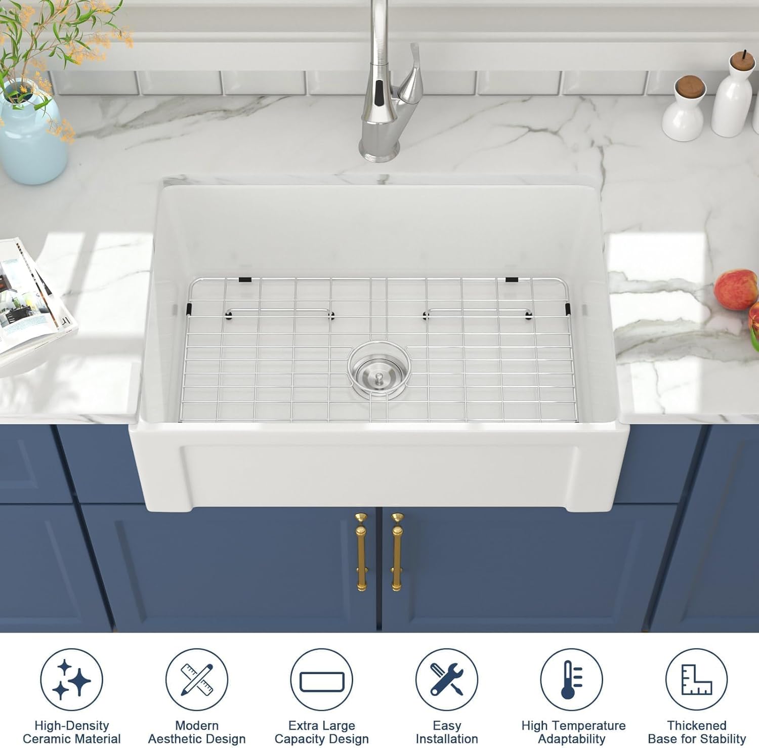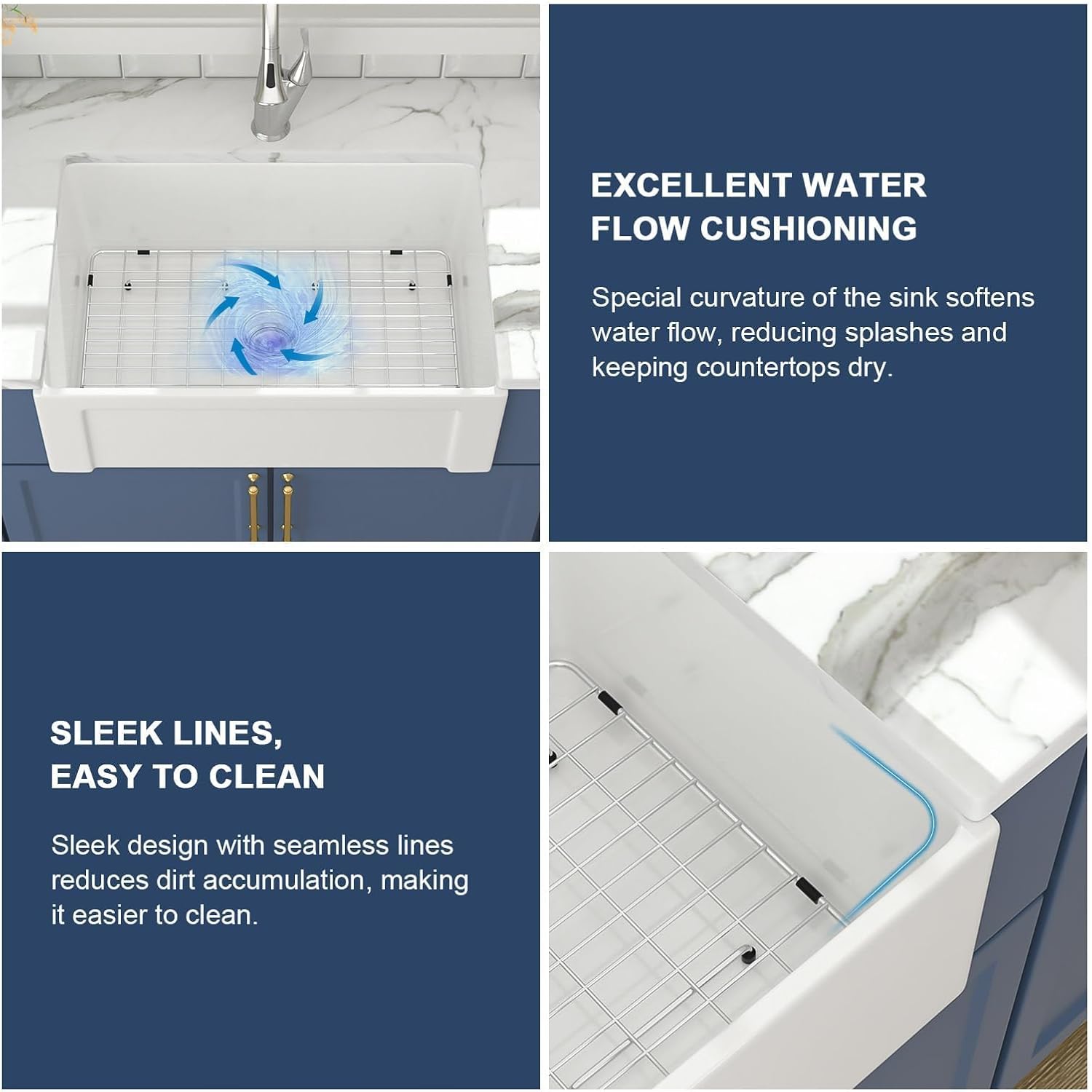The Lordear ceramic farmhouse sink features a sloped bottom for quick drainage, keeping your ceramic sink clean and dry.