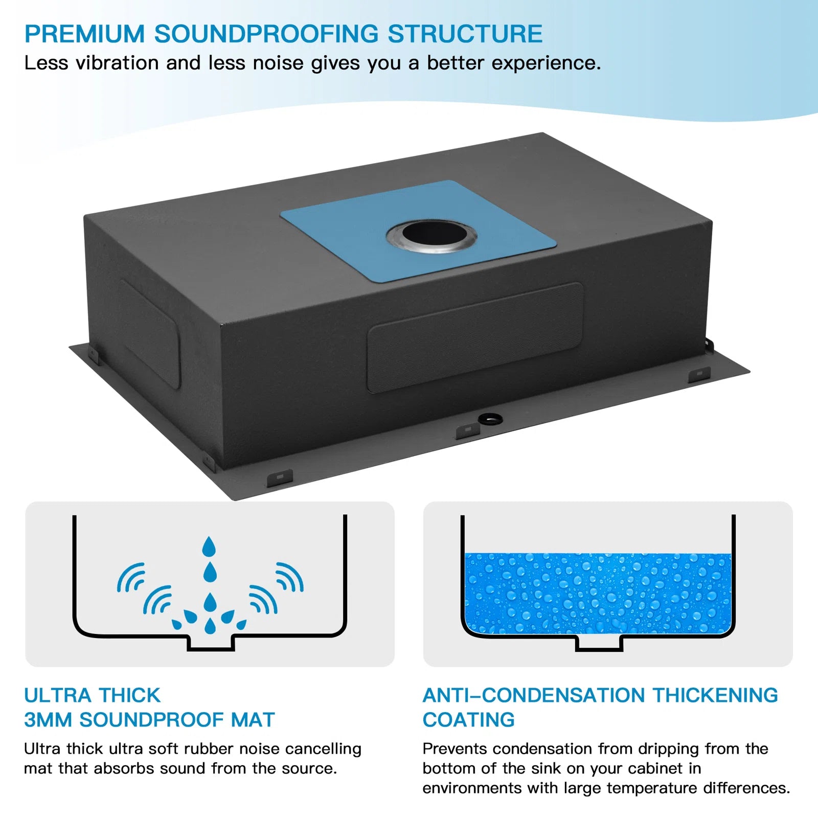 Rust-resistant heavy duty T304 stainless steel in TRU16 real 16-gauge, rust and wear resistant. Our kitchen sinks are built for long term use. The round corner can help prevent corner stain accumulation effectively.