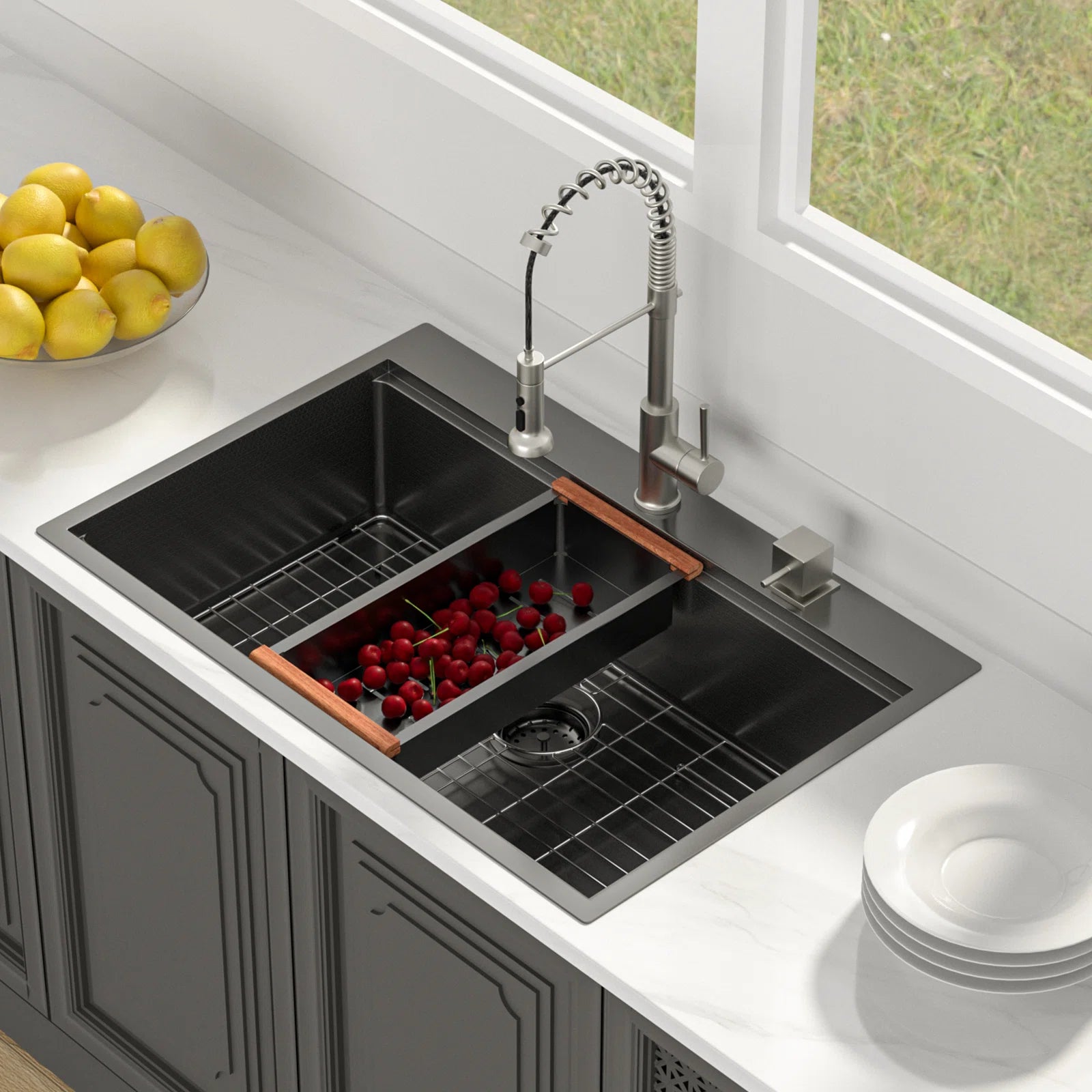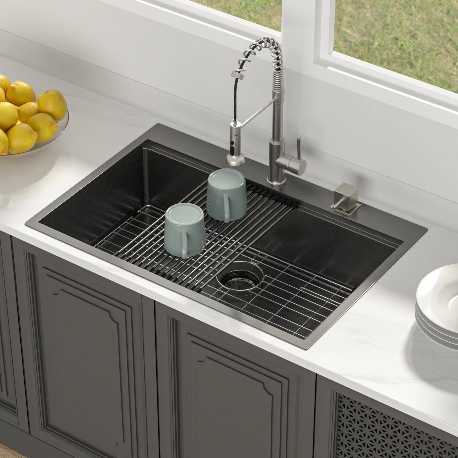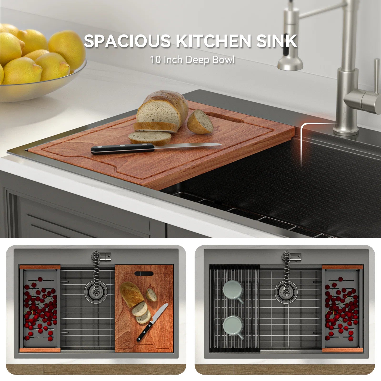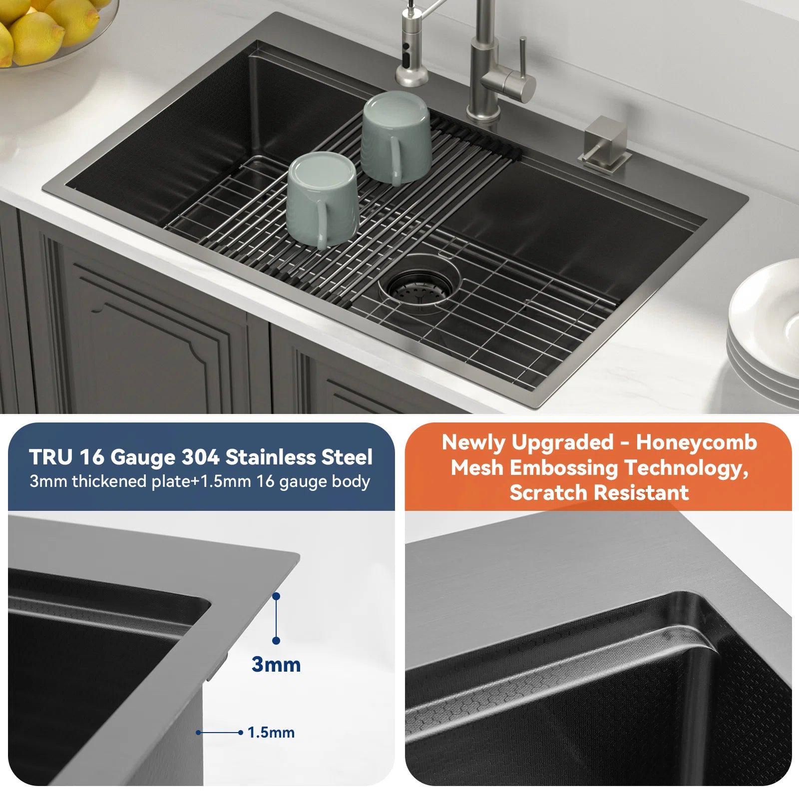 Our 33 inch drop in kitchen sink fits many garbage disposal brands and models, makes installation easy.