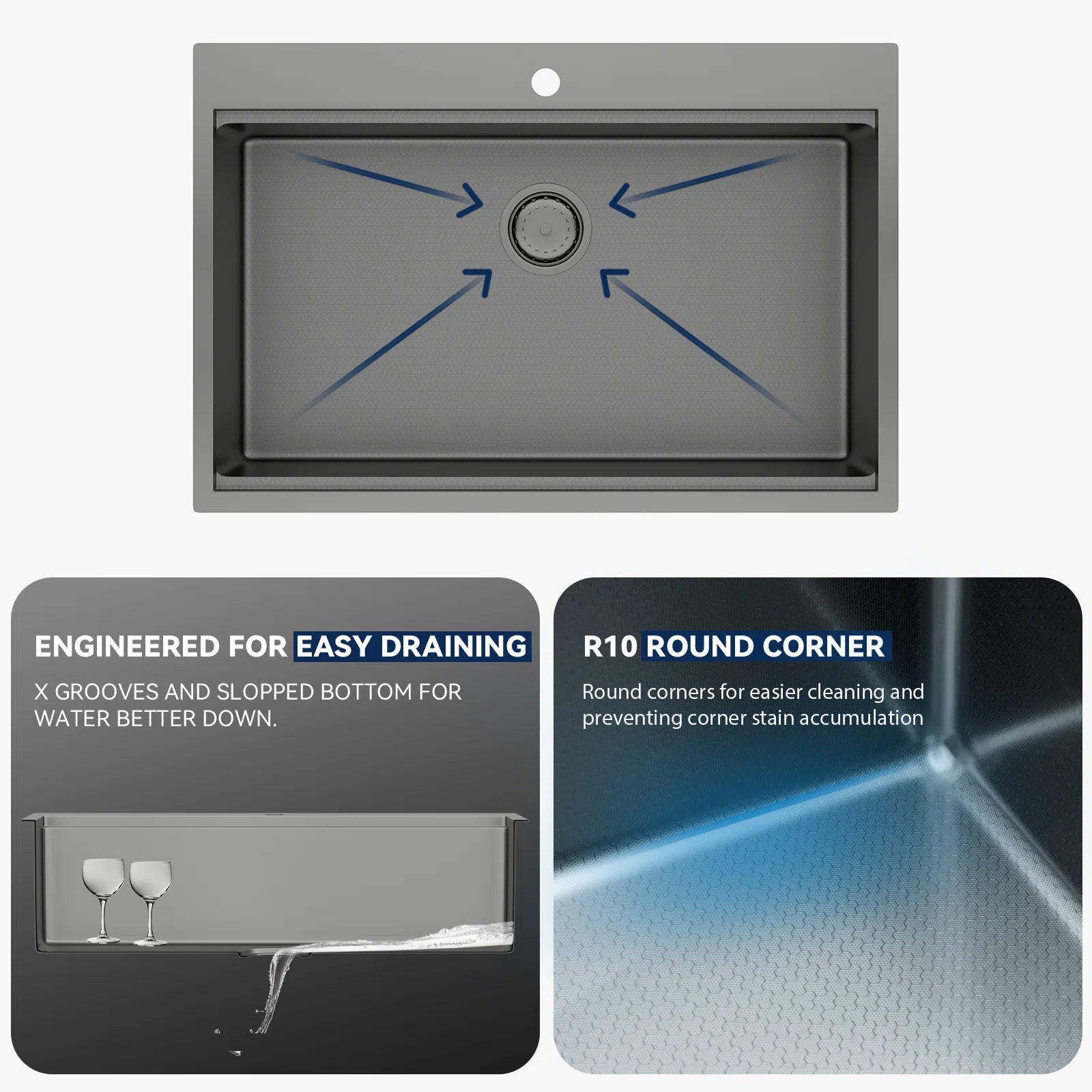 Rust-resistant heavy duty T304 stainless steel. Our single bowl kitchen sinks are built for long term use.