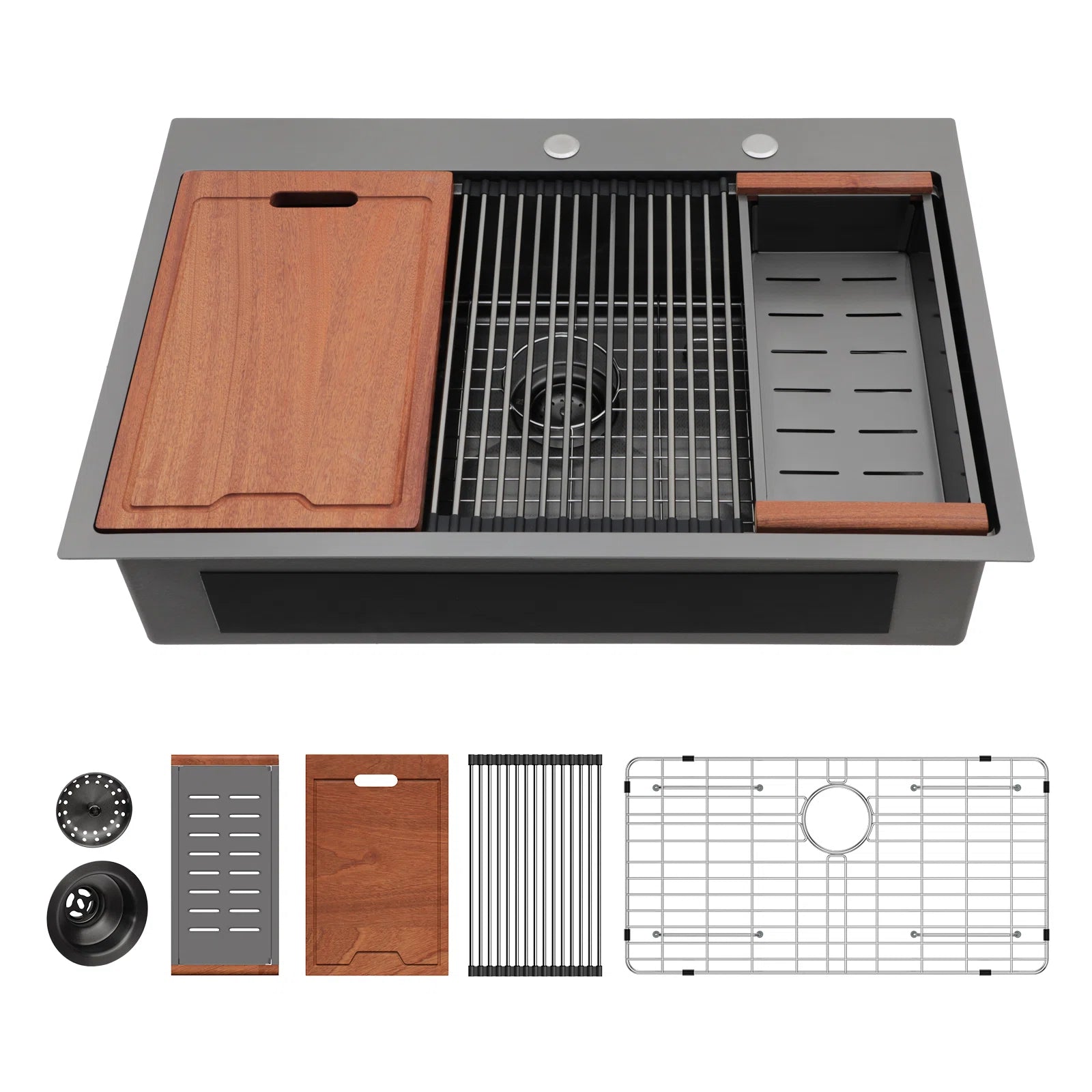 | Included Components | colander, cutting board, stainless steel basket strainer drain, stainless steel bottom rinse grid, stainless steel roll-up rack |