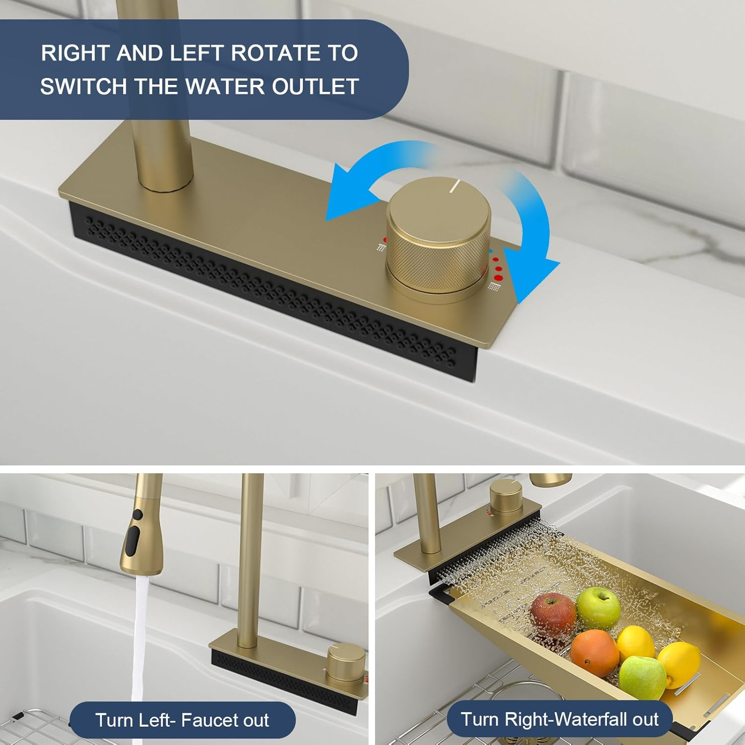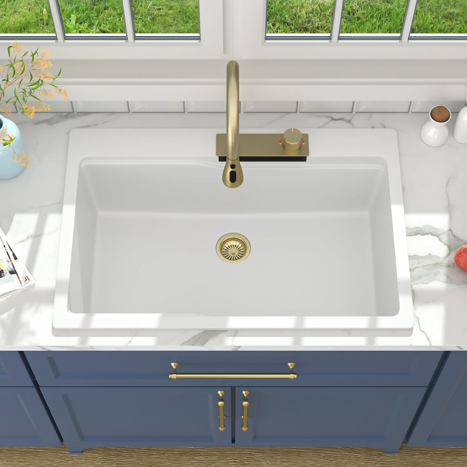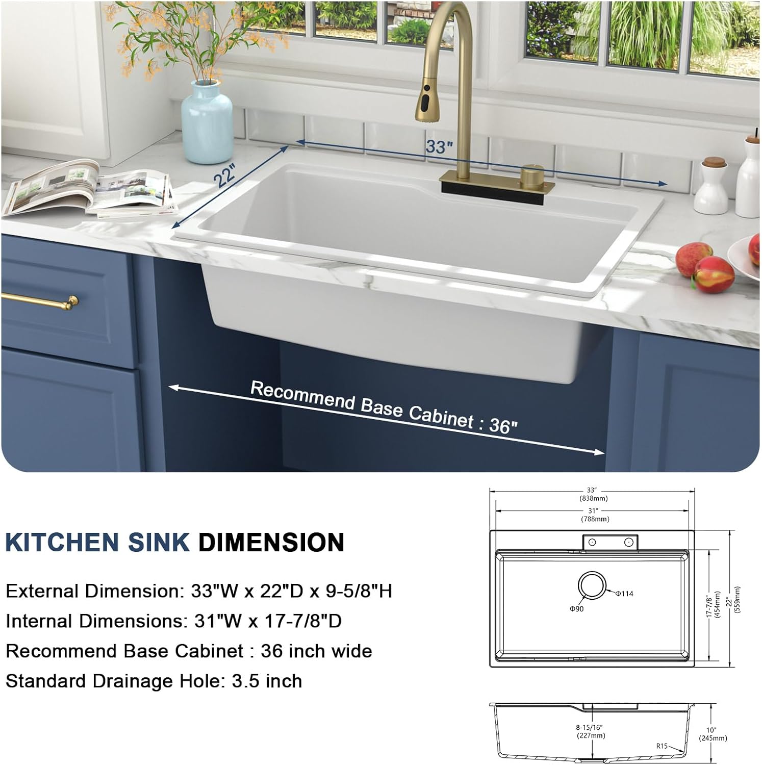 | Included Components | 33 inch white waterfall kitchen sink granite composite, bottom rinse grid, colander, cutting board, waterfall faucet |