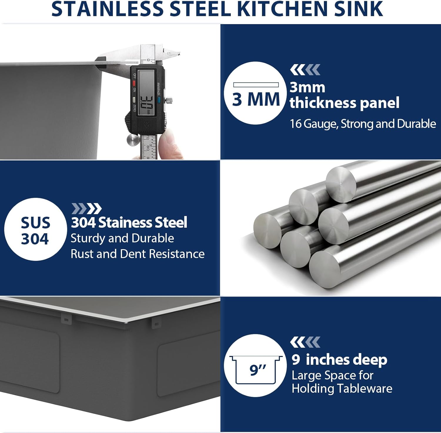Made of premium SUS304 material, the stainless kitchen sink has the superior texture of real stone and anti-osmosis properties