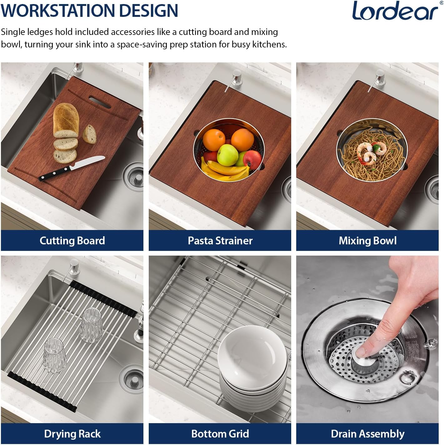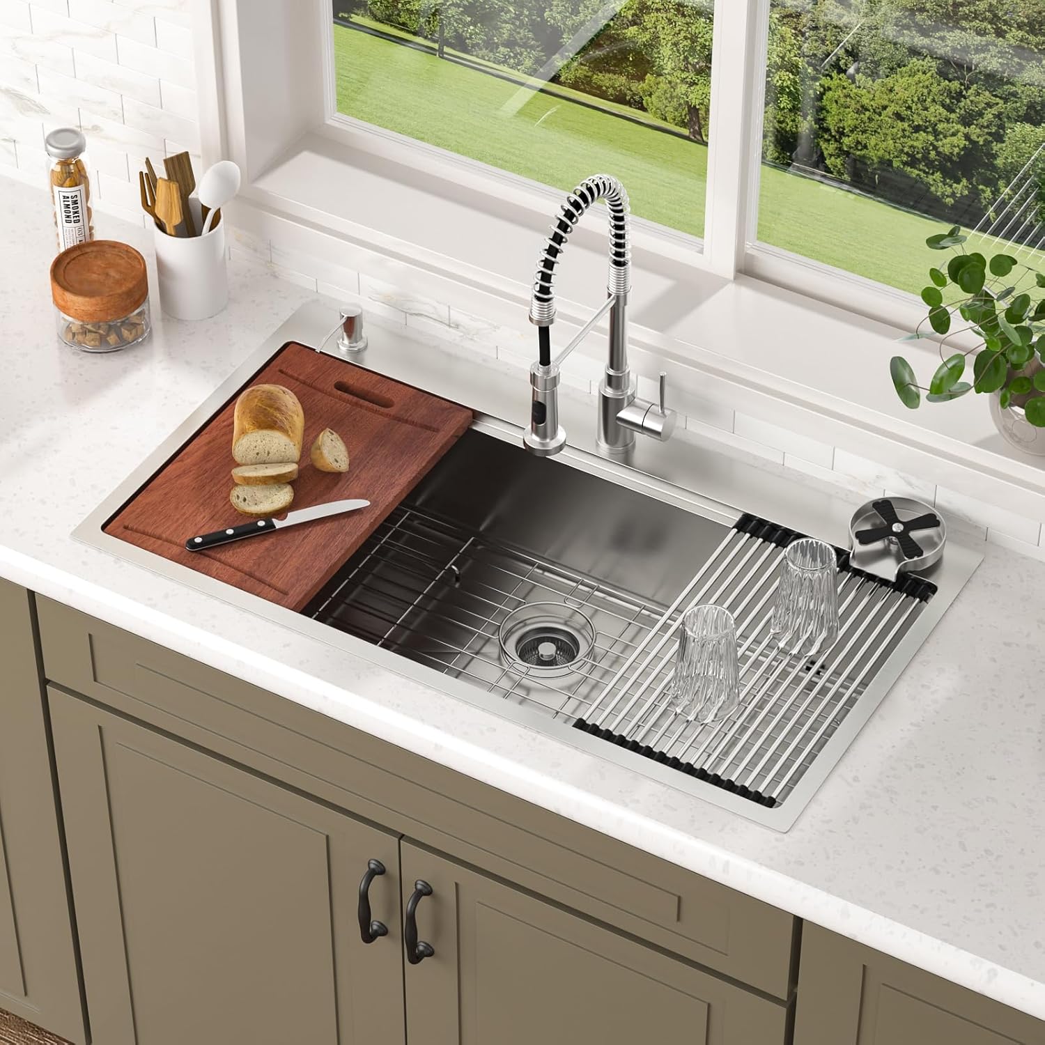 | Included Components | bottom grid, clips & cutout template &instructions, drain assembly, kitchen sink with cutting board, mixing bowl & pasta strainer |