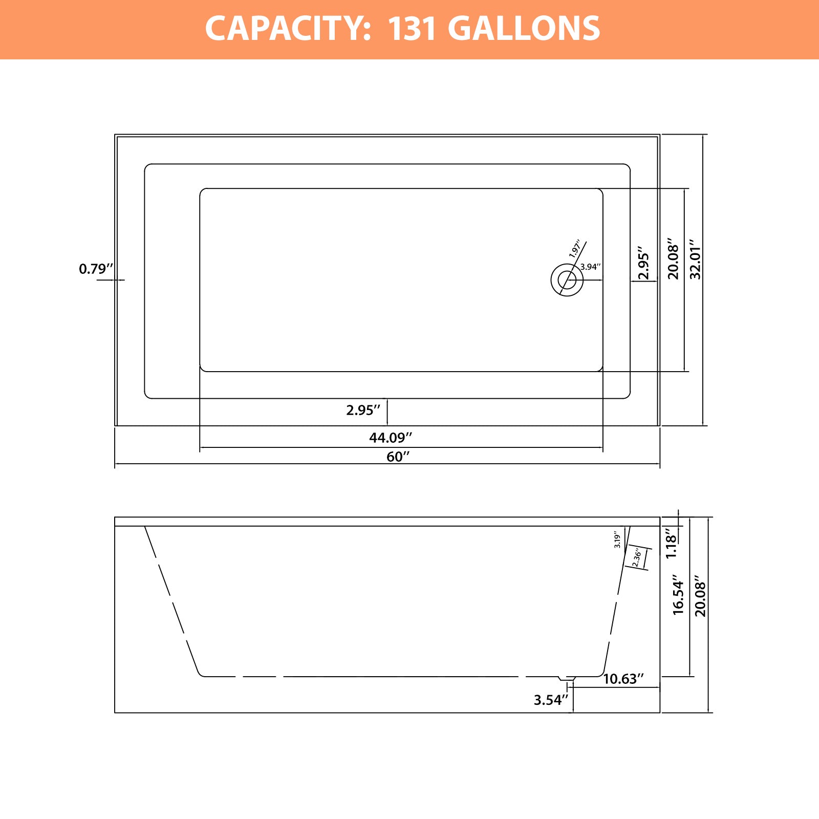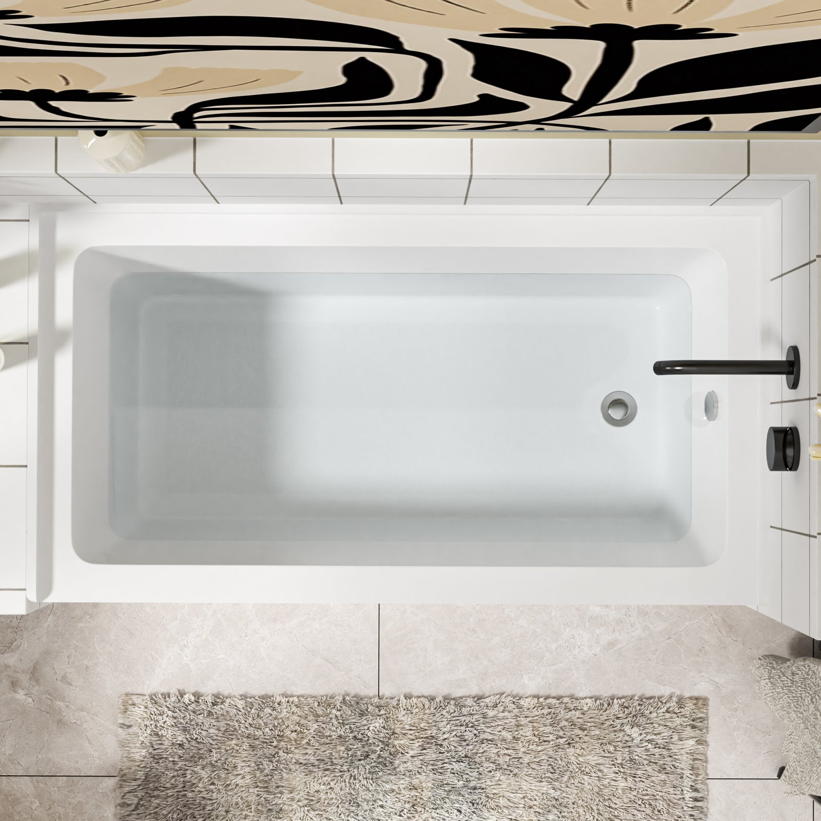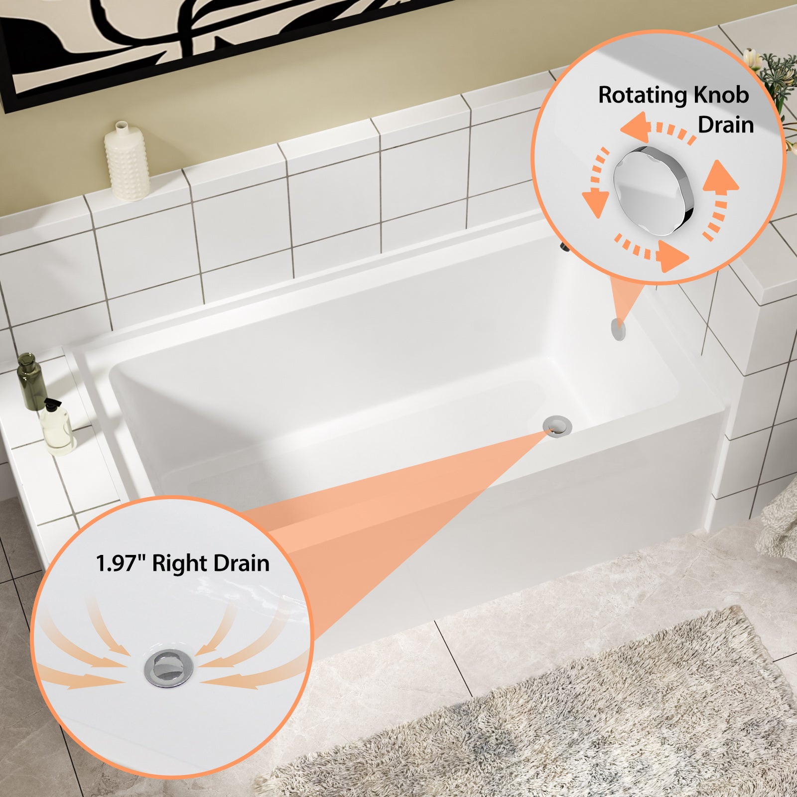 Premium Acrylic Construction: This alcove bathtub is crafted from high-quality acrylic material, ensures long-lasting durability and a smooth, comfortable surface. The acrylic is fade and discoloration-resistant, maintaining its pristine appearance over time.