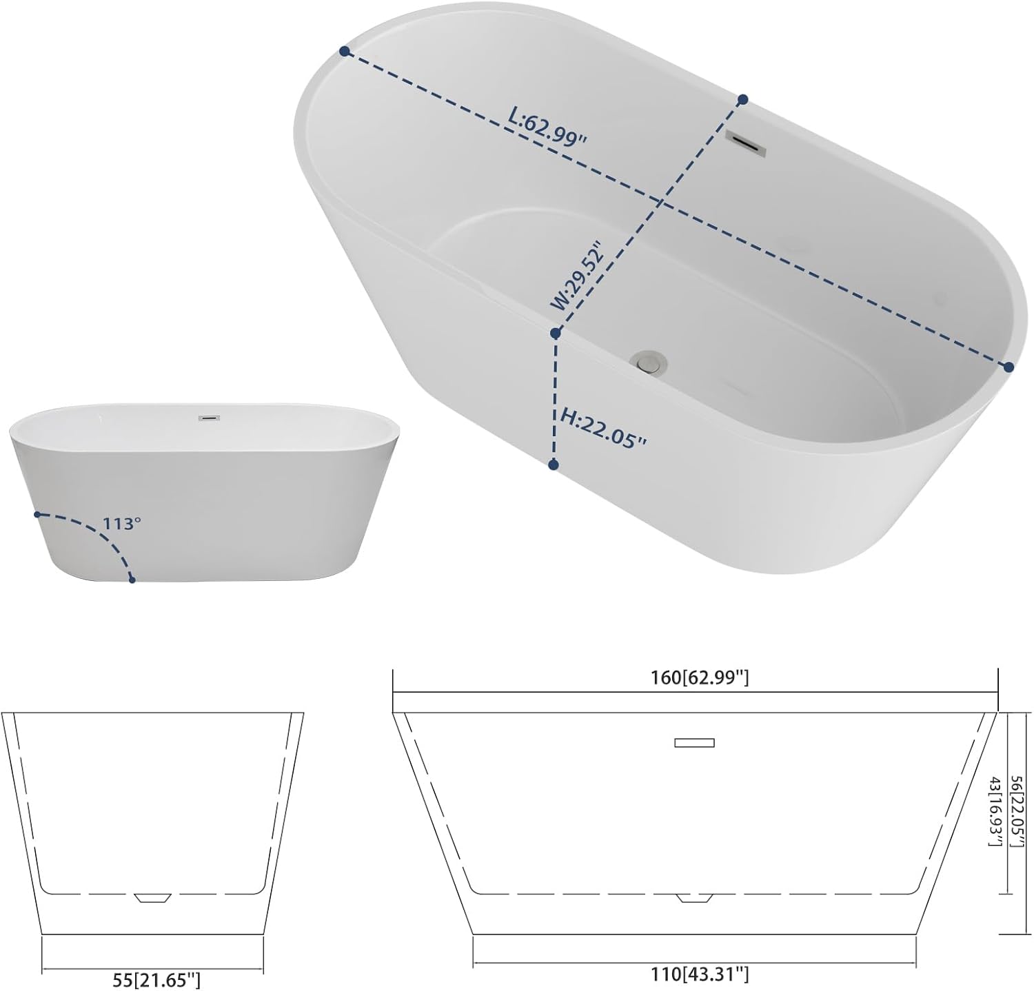 Crafted with high-quality acrylic, the bathtub maintains its bright white finish over time.