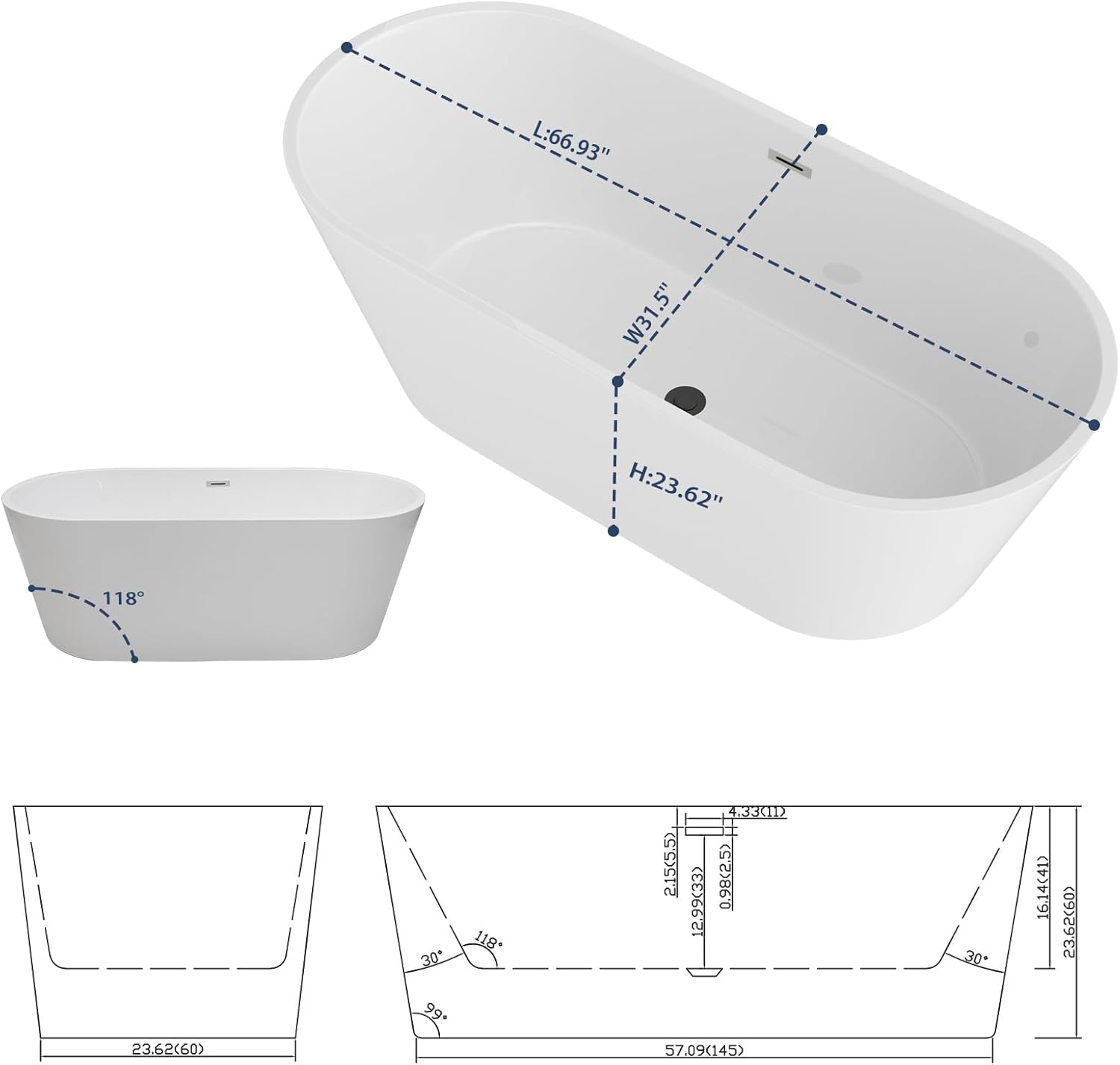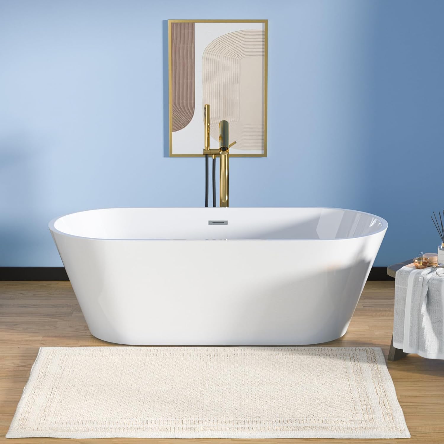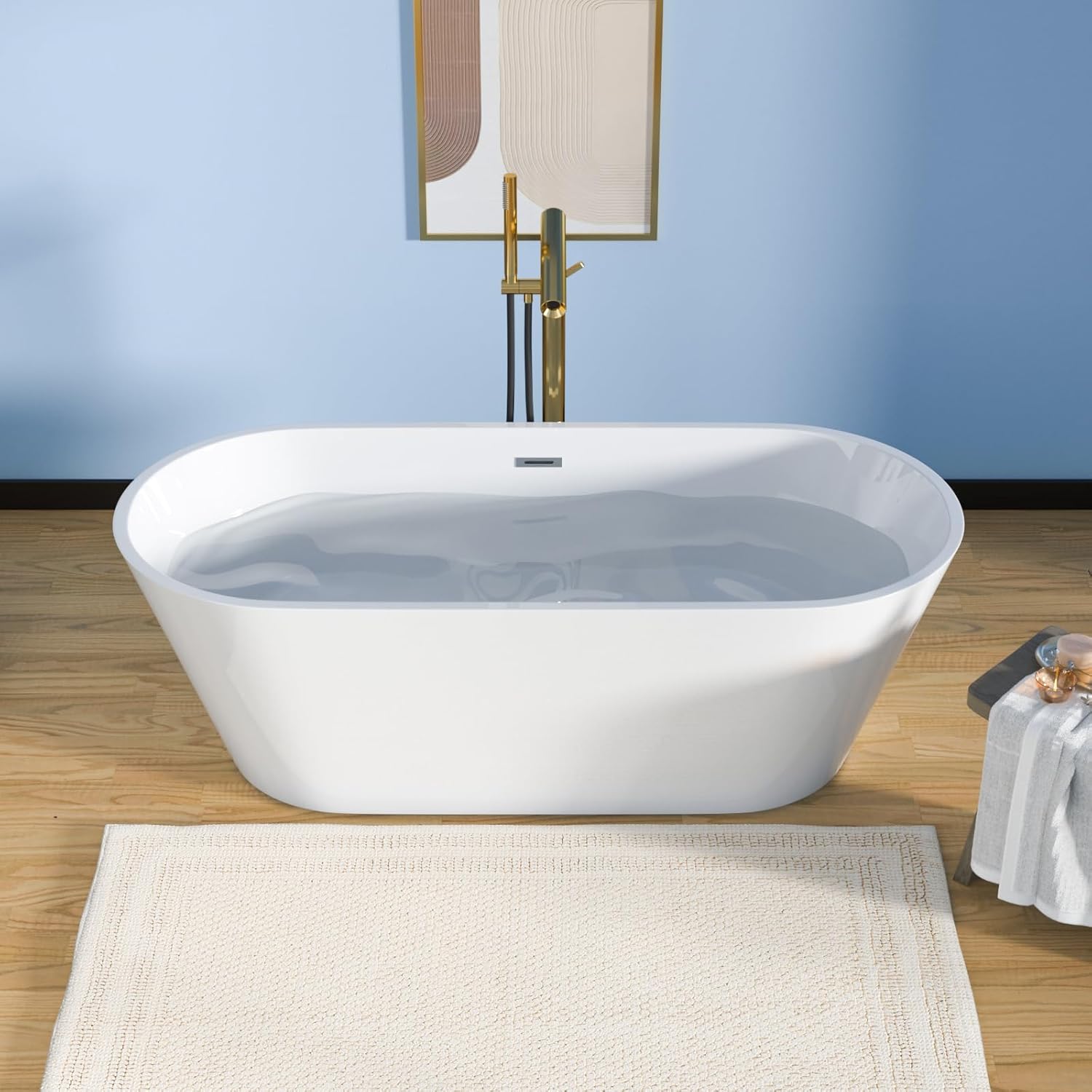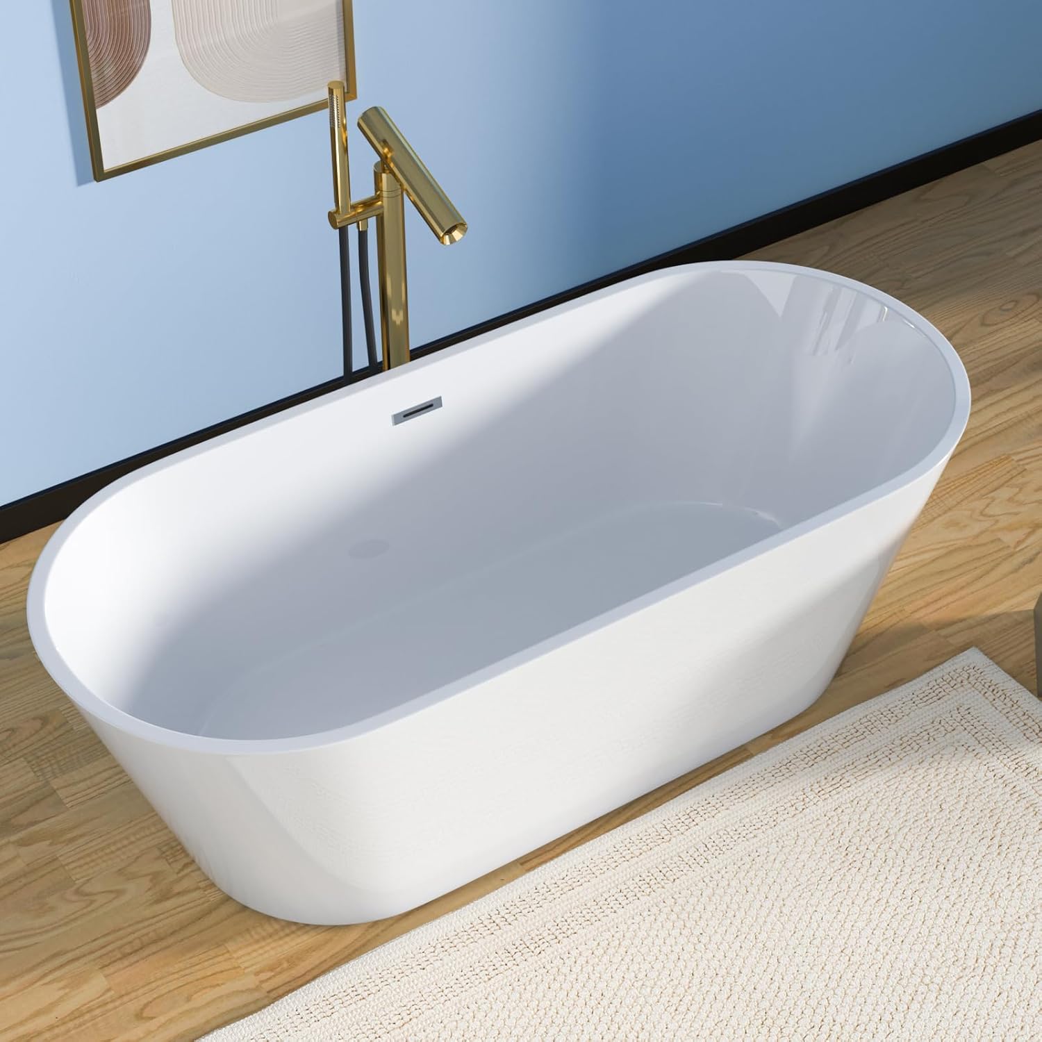 Crafted with high-quality acrylic, the bathtub maintains its bright white finish over time.