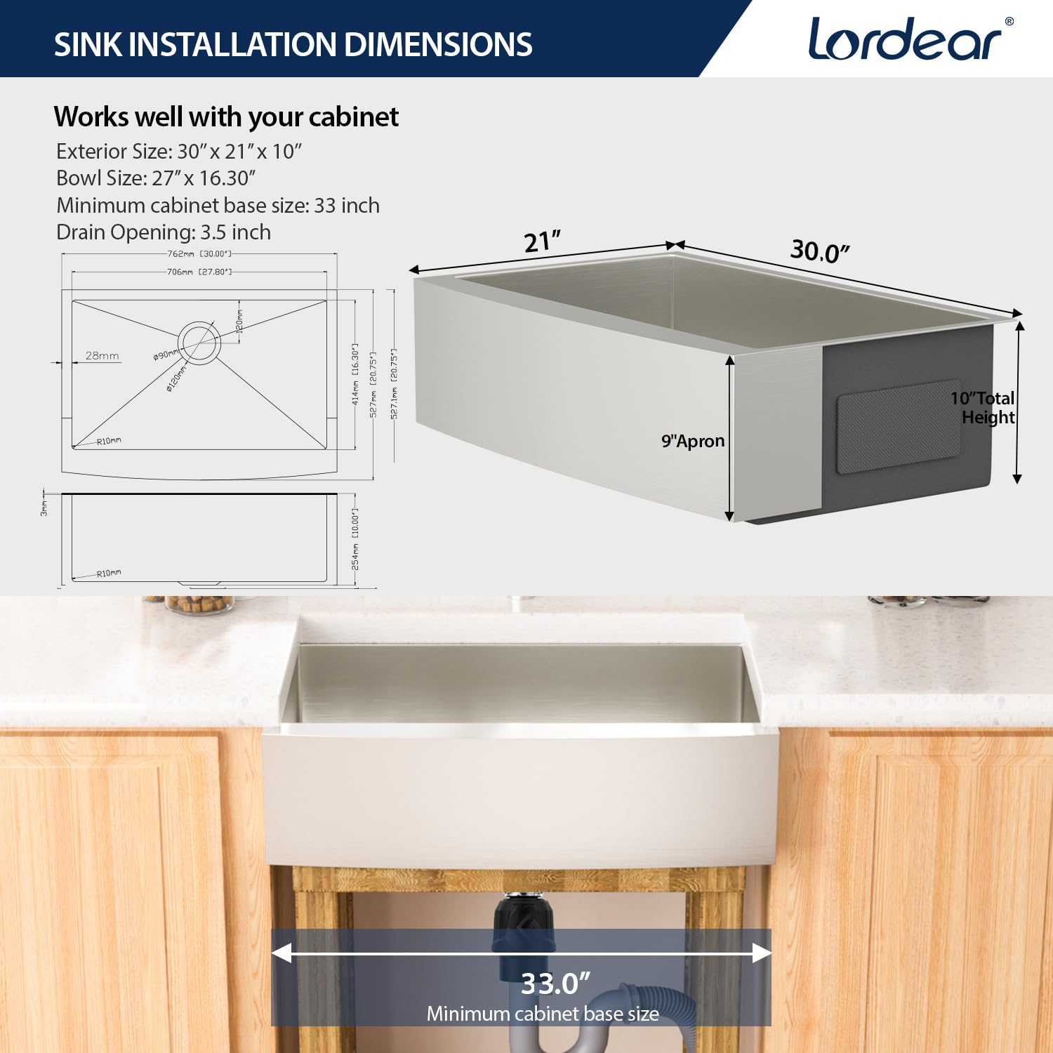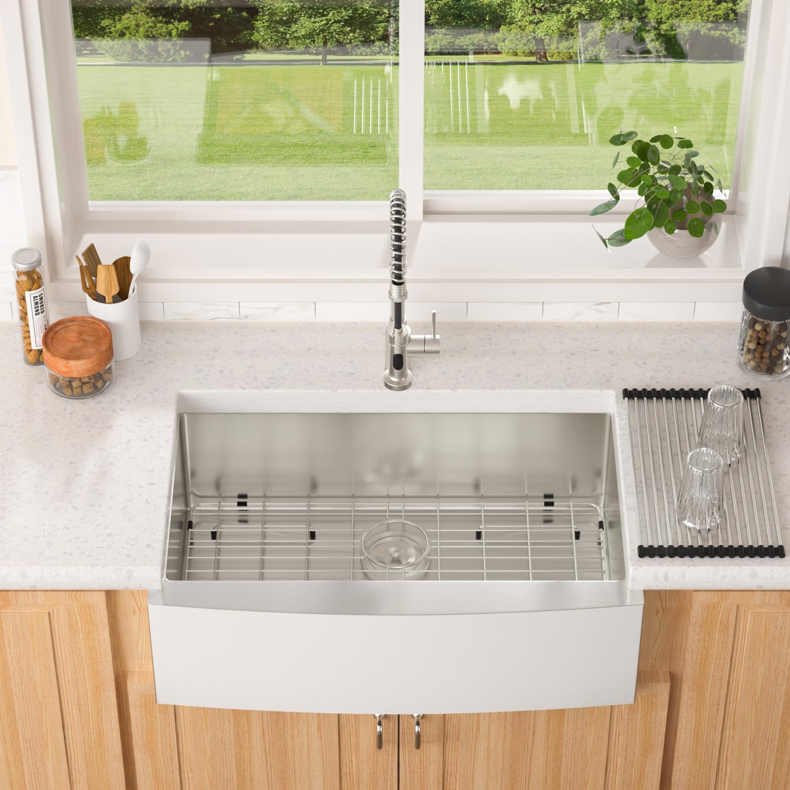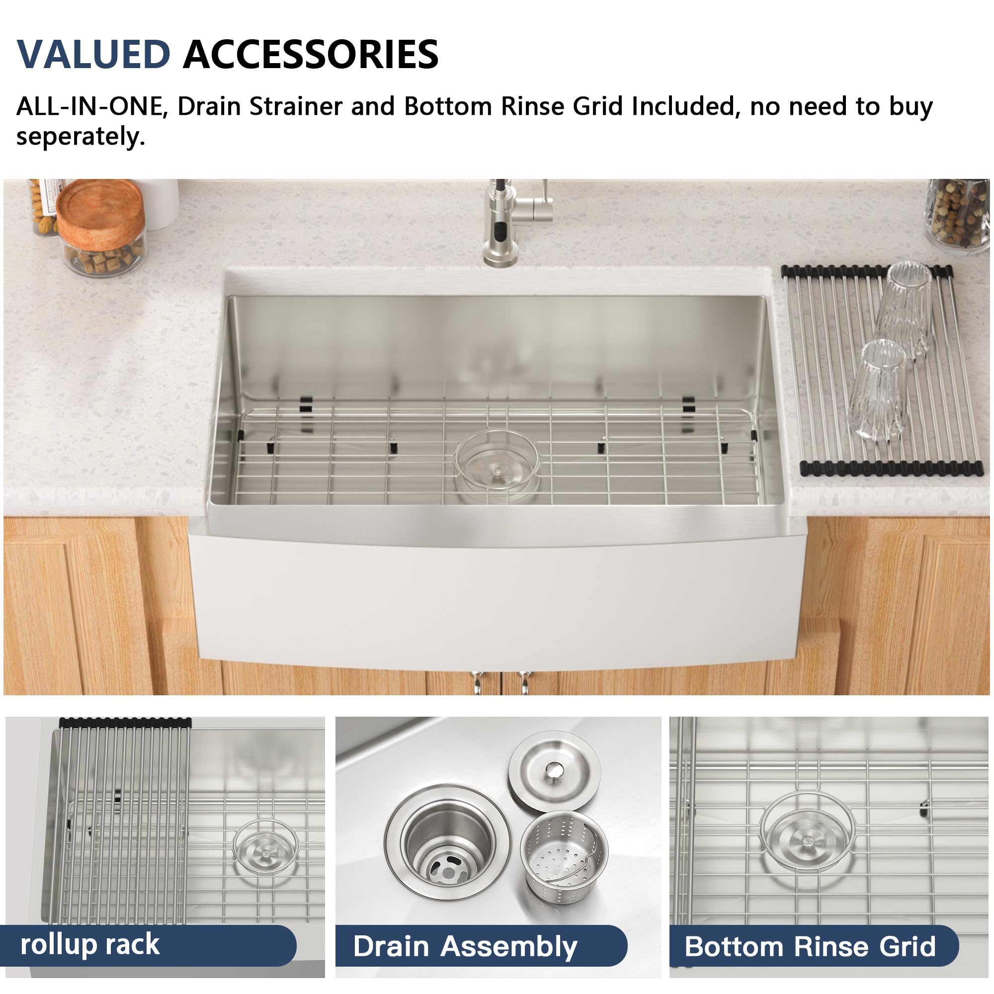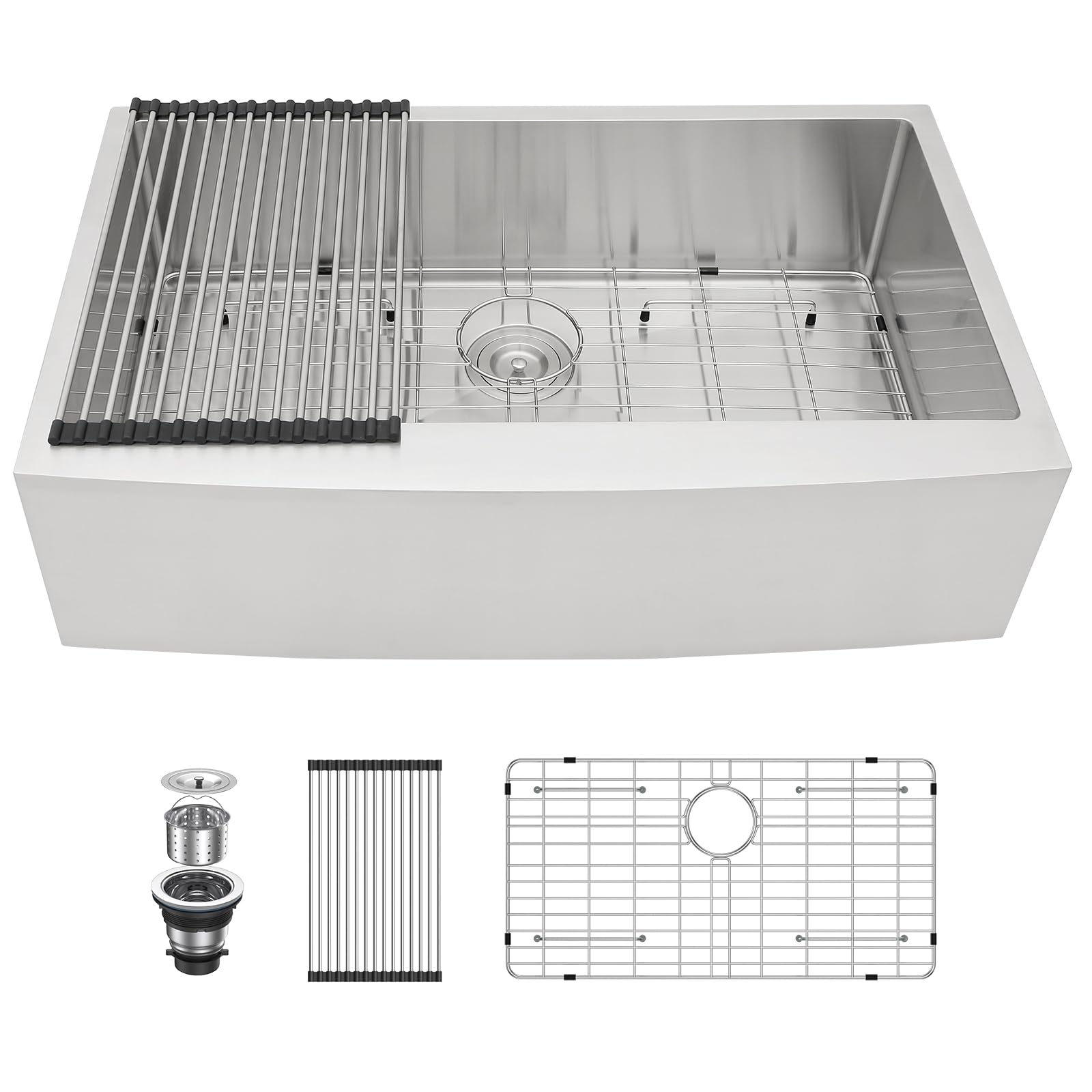 | Included Components | drain assembly with basket strainer, clips, cutout template, installation instructions, bottom grid, roll-up rack, 30-inch stainless steel farmhouse sink |