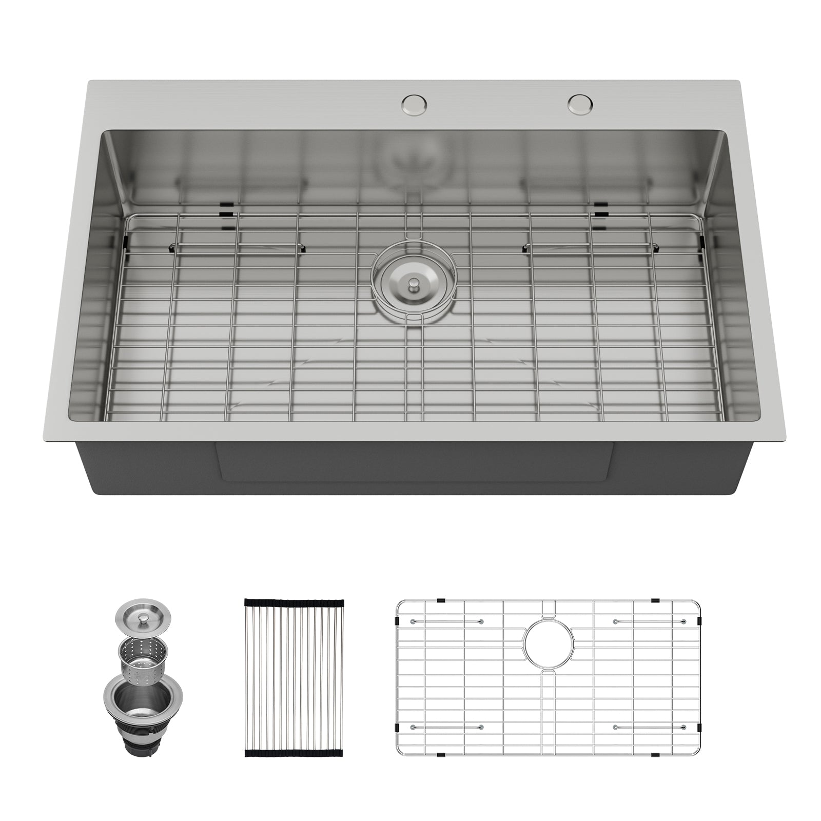 | Included Components | 3.5" basket strainer drain, 36 drop in kitchen sink, cutout template, roll-up drying rack, bottom dish grid, topmount installation instruction |