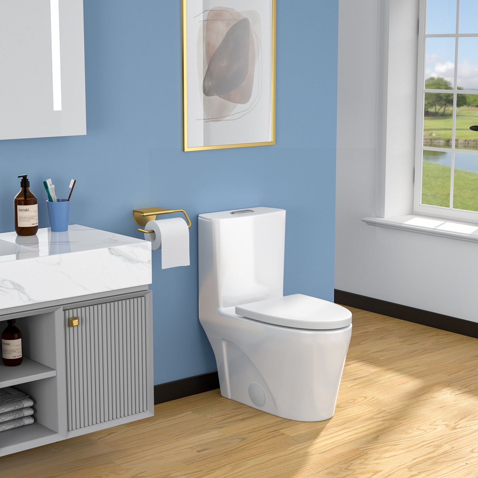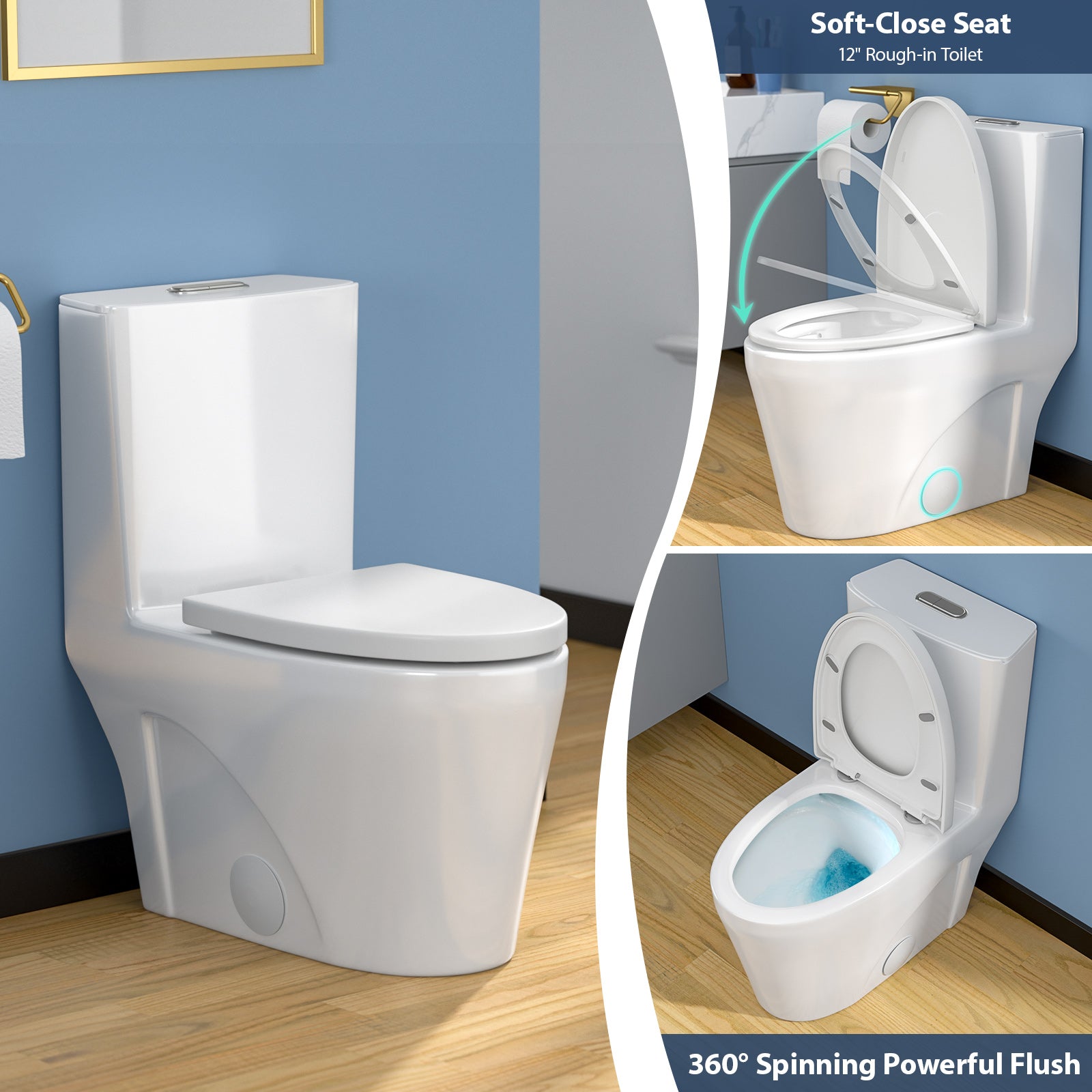 | Included Components | a one-piece toilet, soft closing toilet seat, flush valve, high-quality wax ring, floor bolts, 2 bolt caps, and installation instructions |