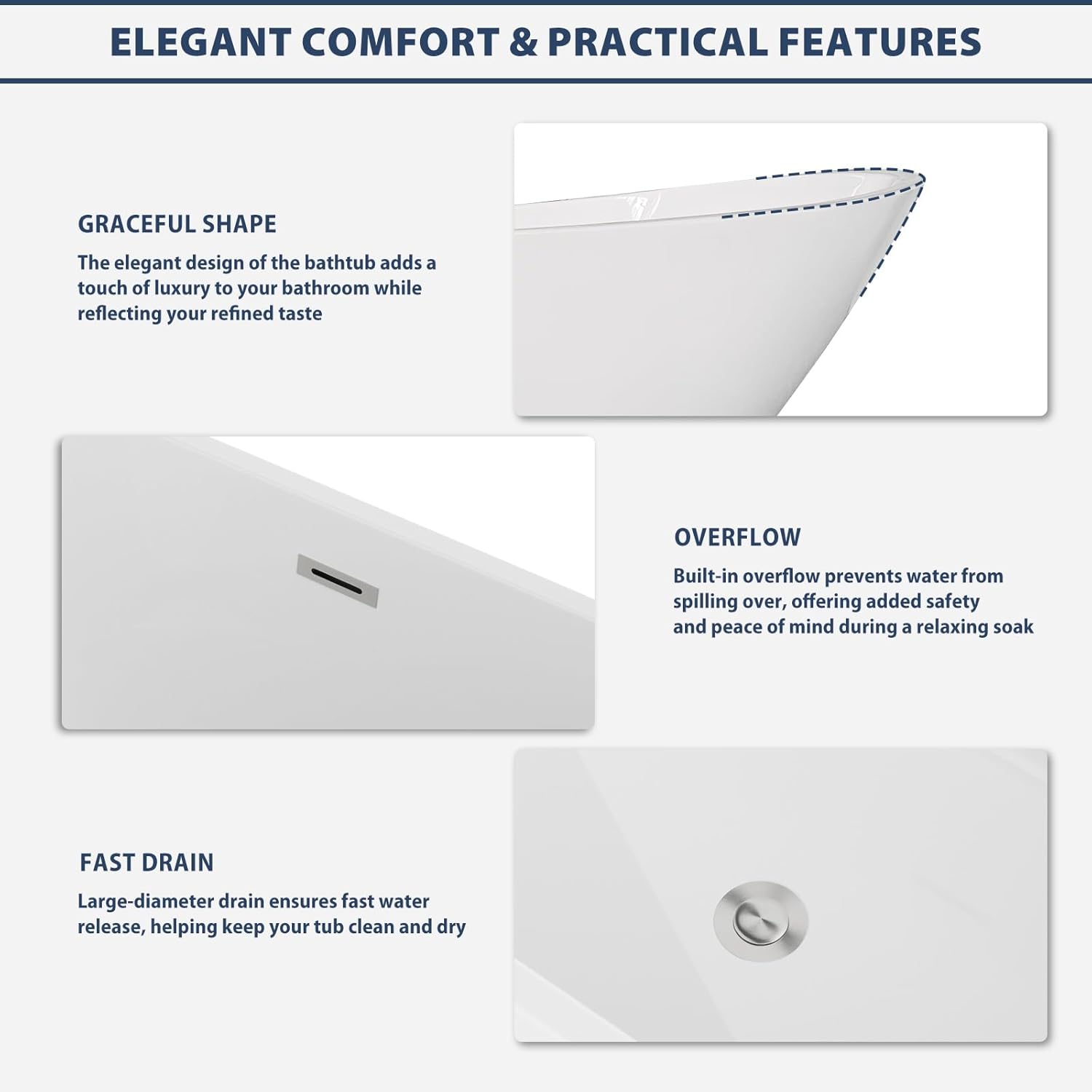 Crafted with high-quality acrylic, the bathtub maintains its bright white finish over time.