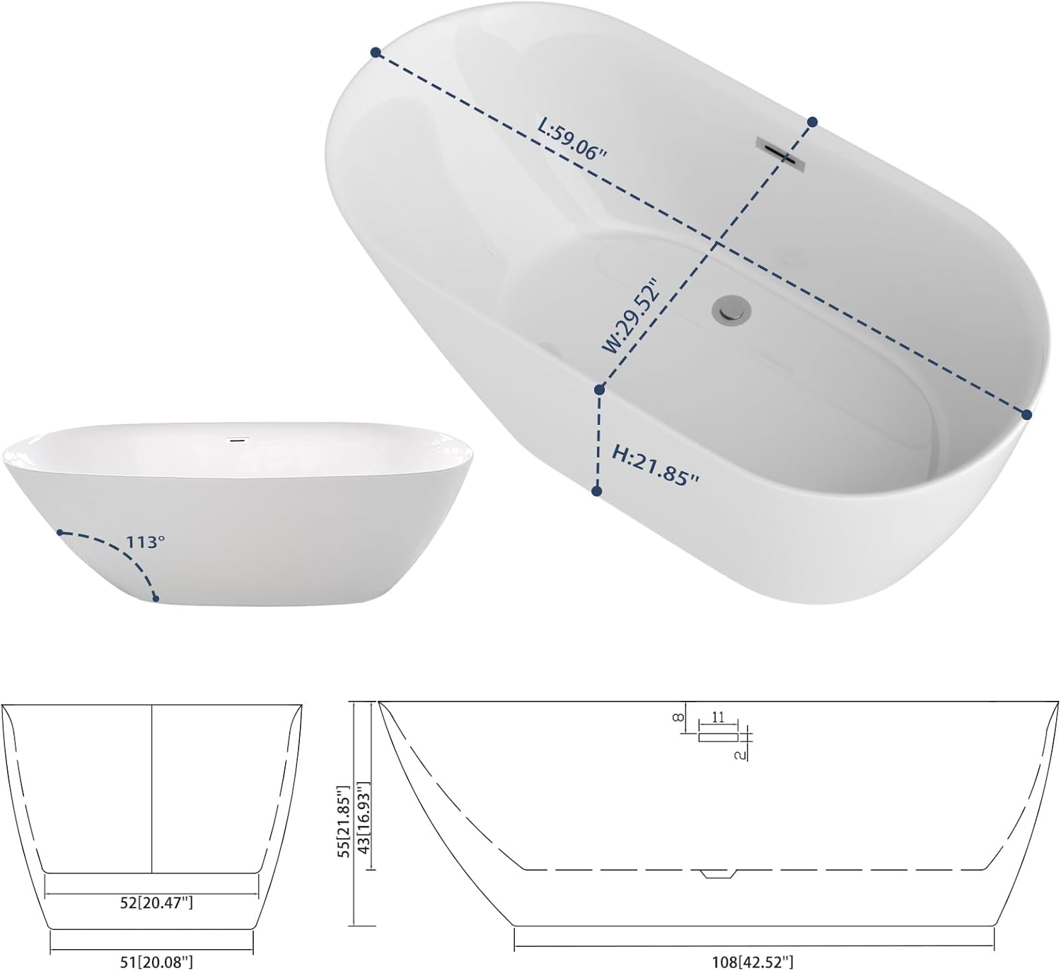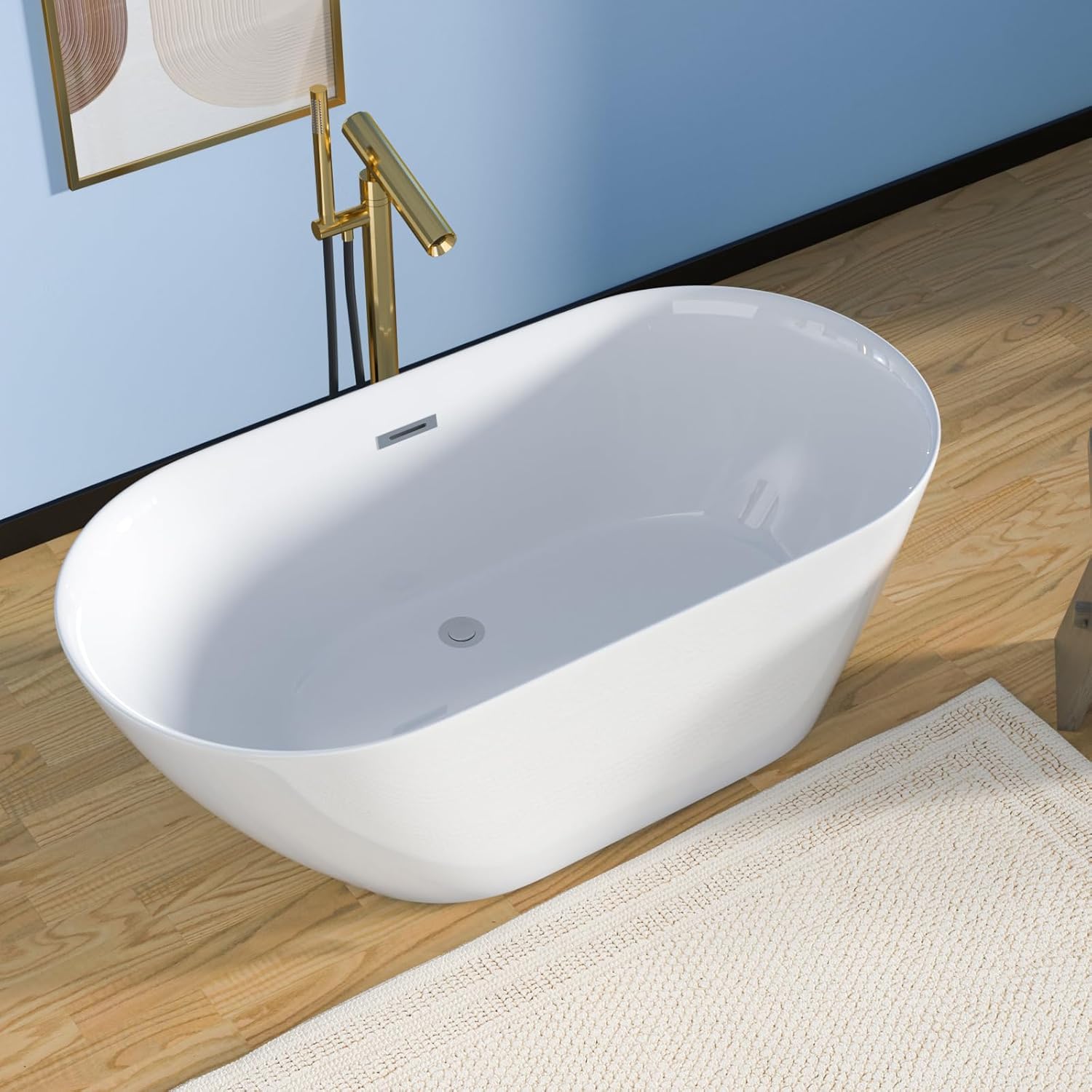 Crafted with high-quality acrylic, the bathtub maintains its bright white finish over time.