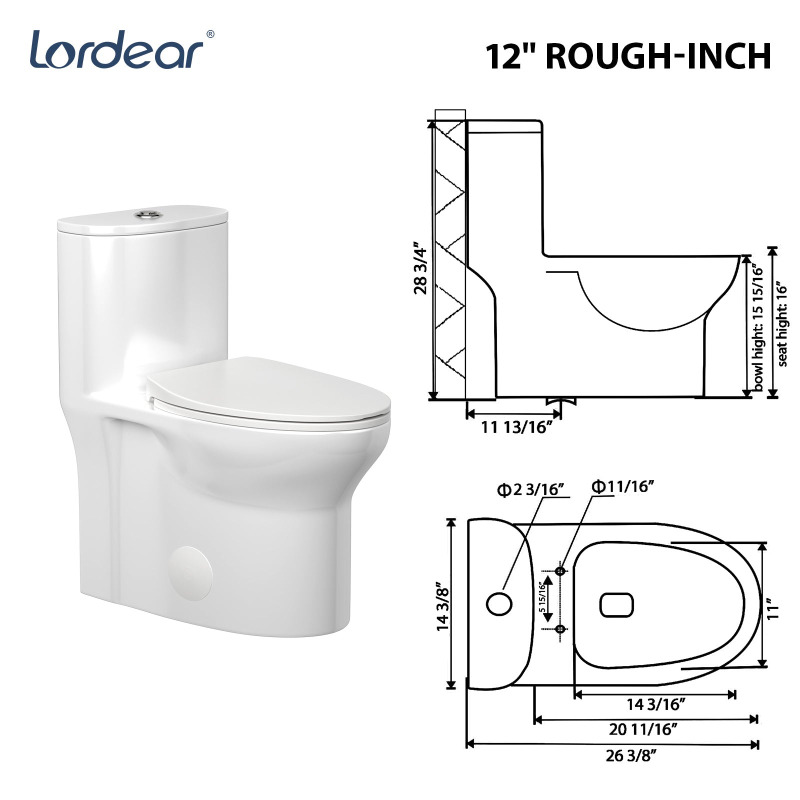 The Lordear One Piece Toilet features a sleek, modern look that complements any bathroom decor. Made from premium ceramic with a high-gloss glazed finish, it resists stains and odors while maintaining durability.