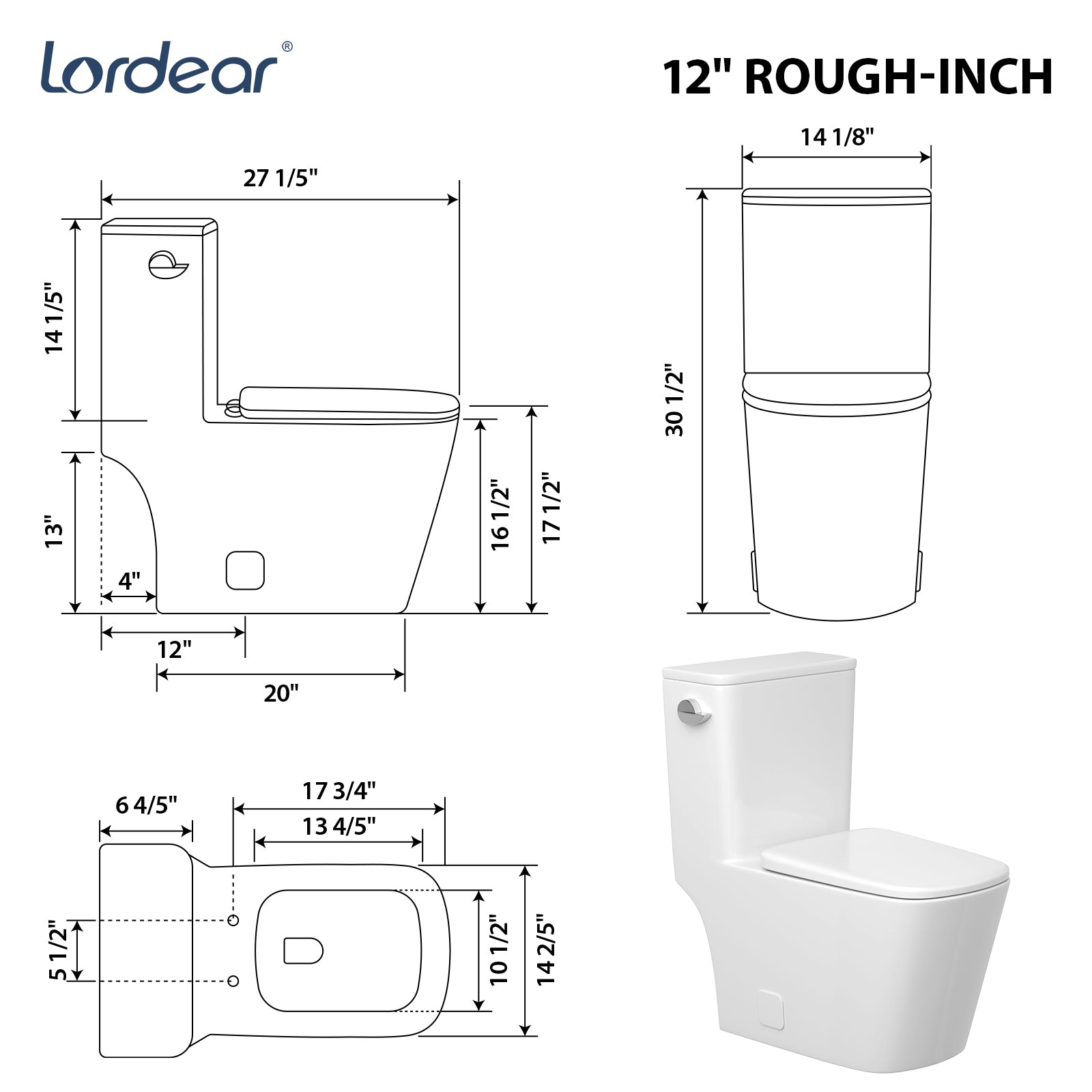 The Lordear One Piece Toilet features a sleek, modern look that complements any bathroom decor. Made from premium ceramic with a high-gloss glazed finish, it resists stains and odors while maintaining durability.