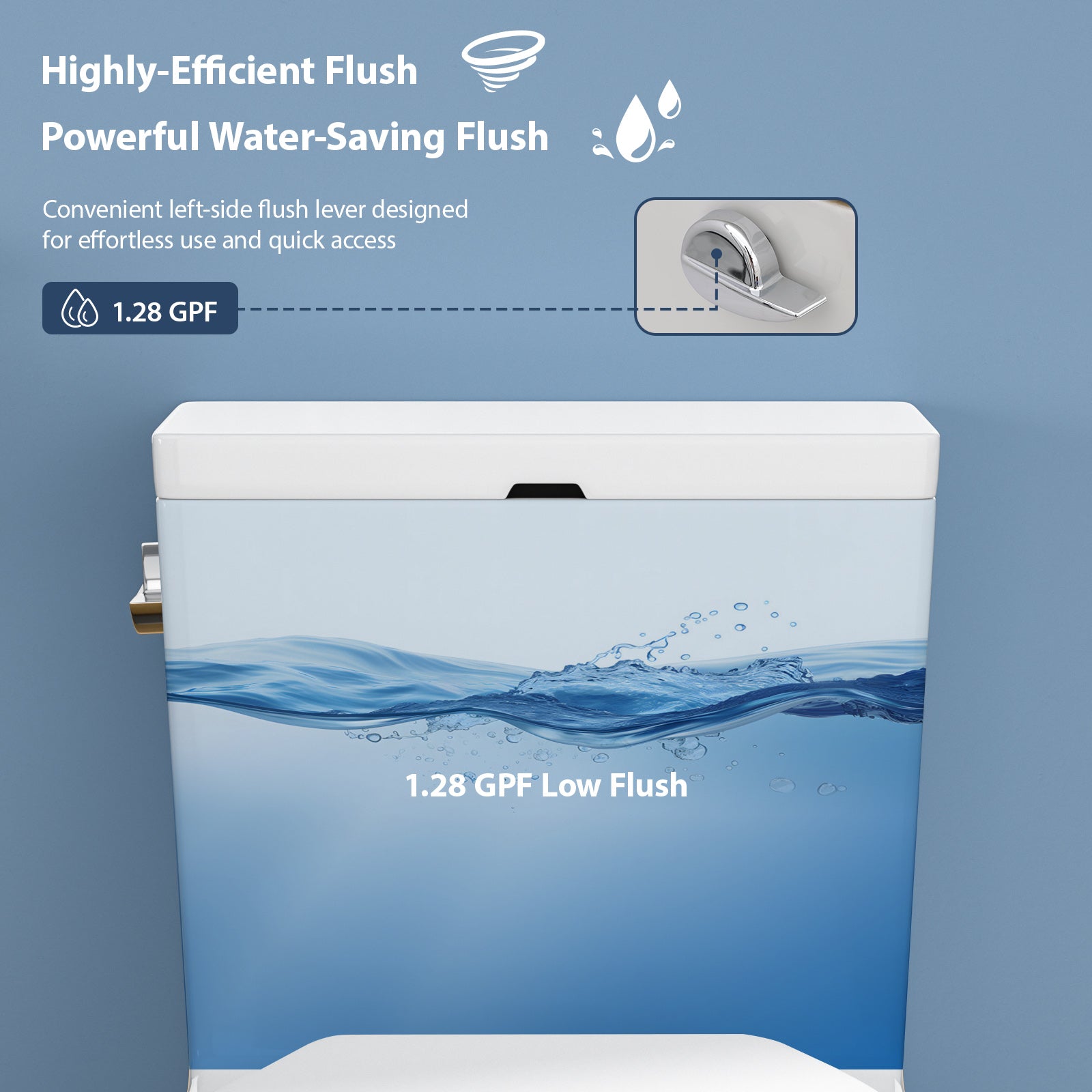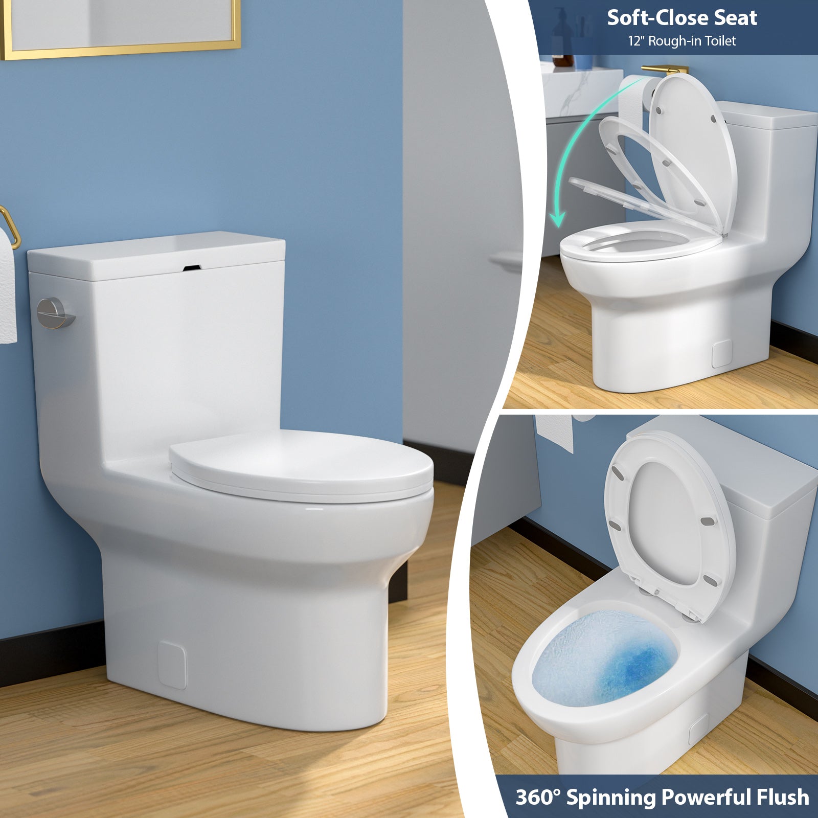 | Included Components | Soft closing toilet seat, floor bolts and 2 bolt caps, one-piece toilet, high-quality wax ring, flush valve |