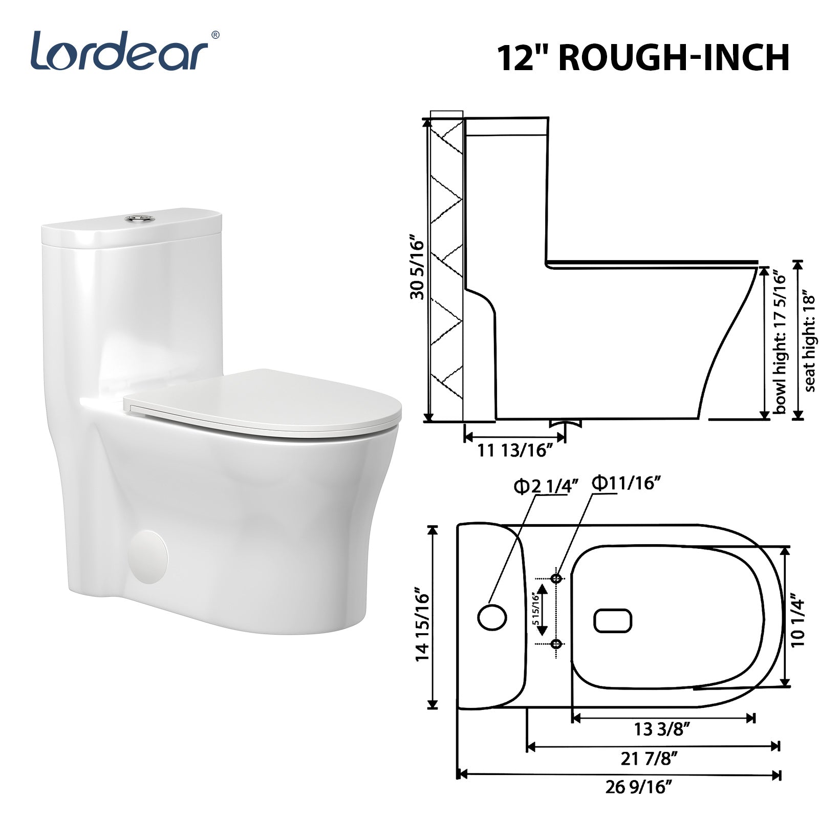 The Lordear One Piece Toilet features a sleek, modern look that complements any bathroom decor. Made from premium ceramic with a high-gloss glazed finish, it resists stains and odors while maintaining durability.