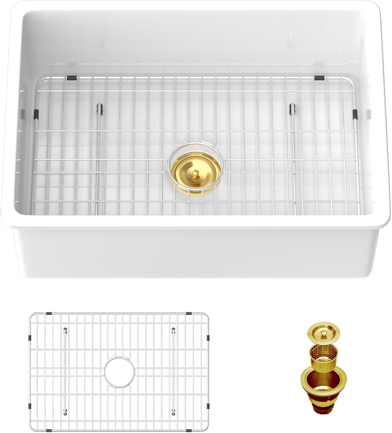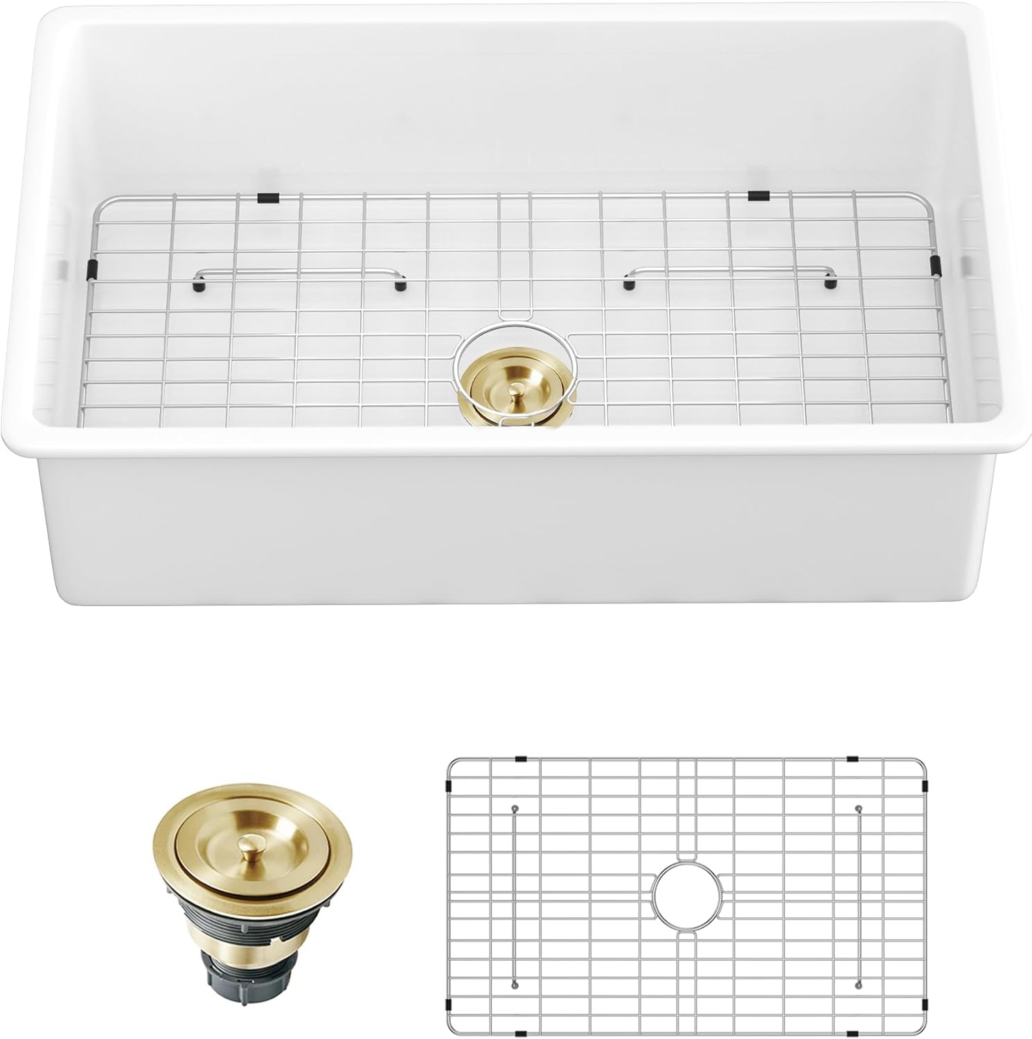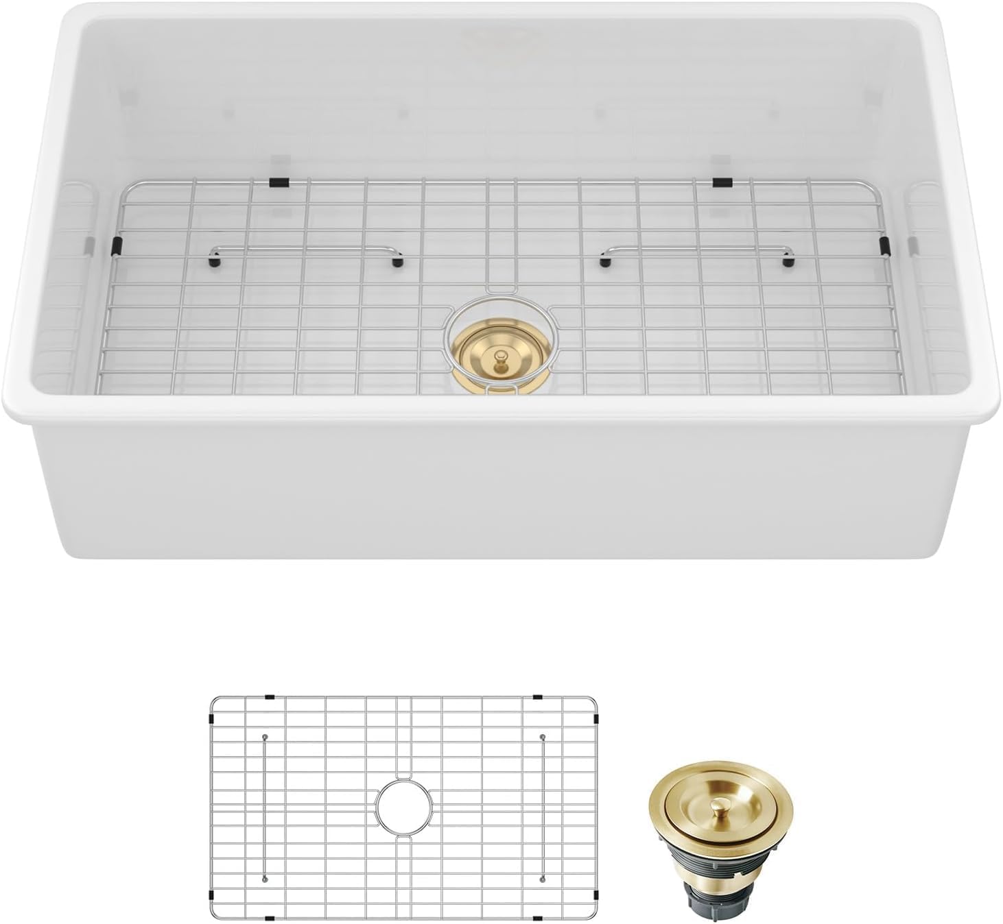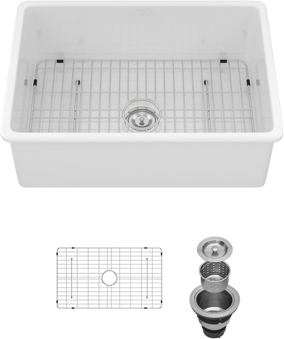 | Included Components | White 32 inch Undermount Ceramic Kitchen Sink, Bottom Grid, Drain Assembly |
